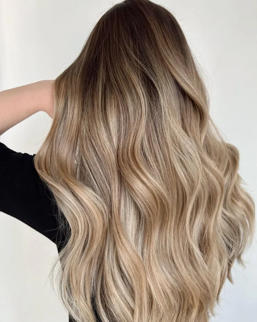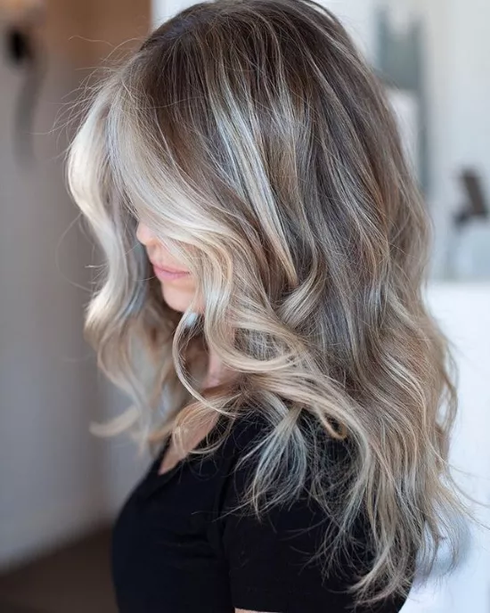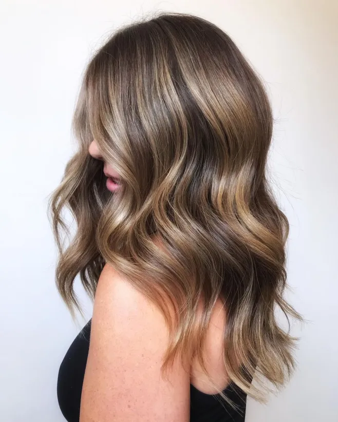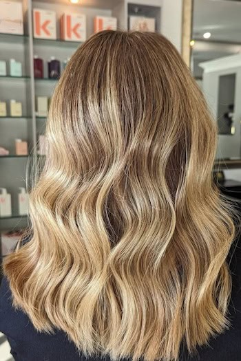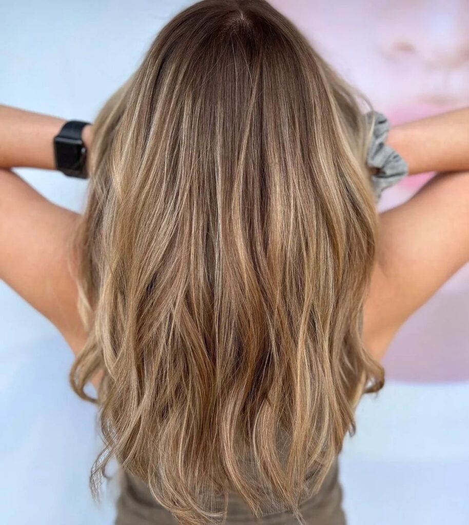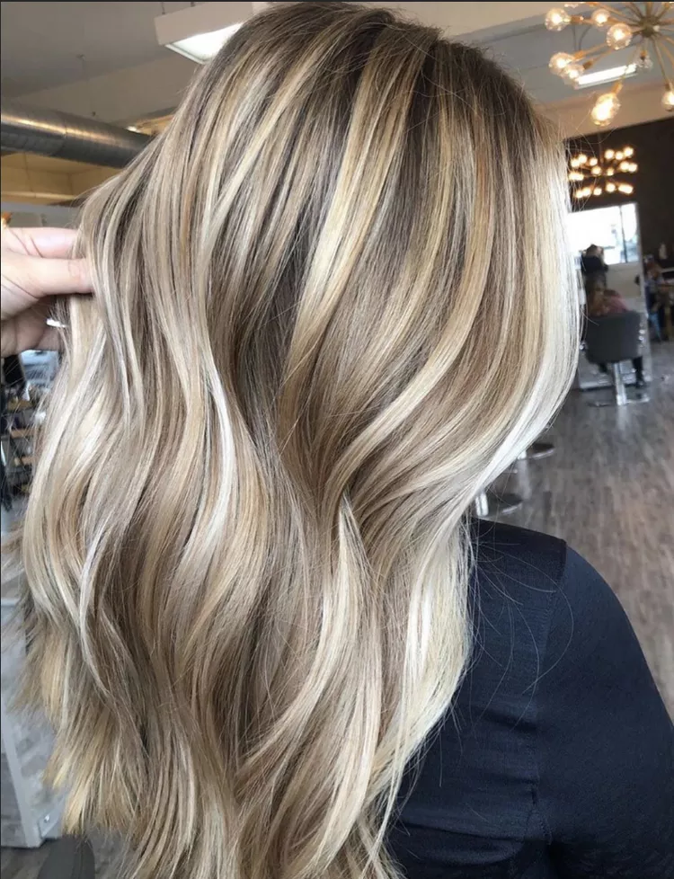 This look blends warm blonde highlights with soft sandy lowlights to create depth and contrast. The combination gives hair a naturally sunlit effect that looks full of movement and texture.