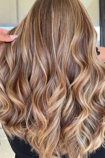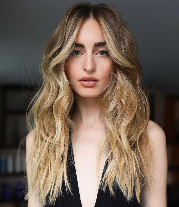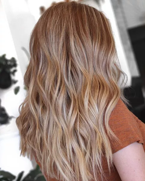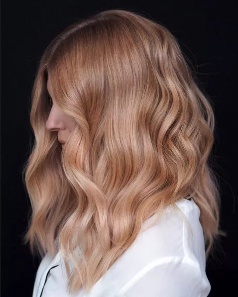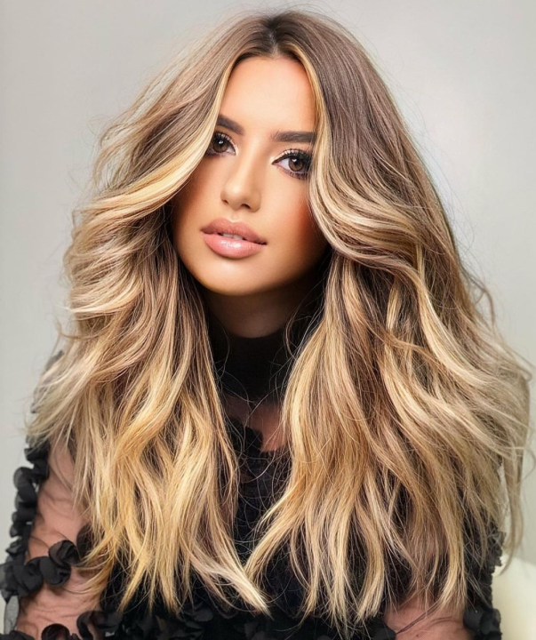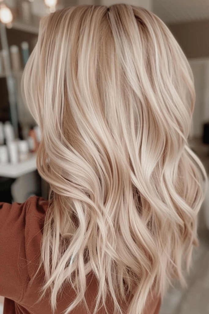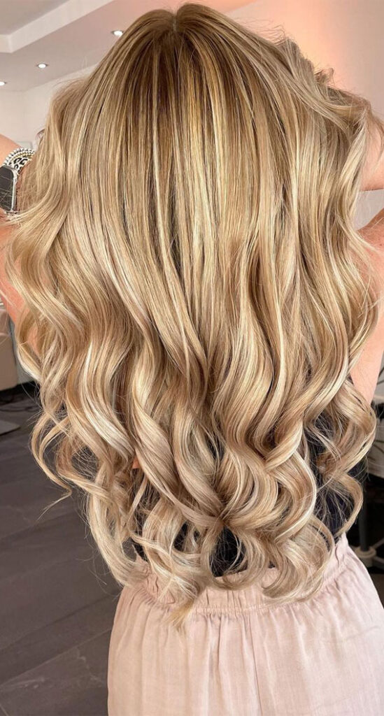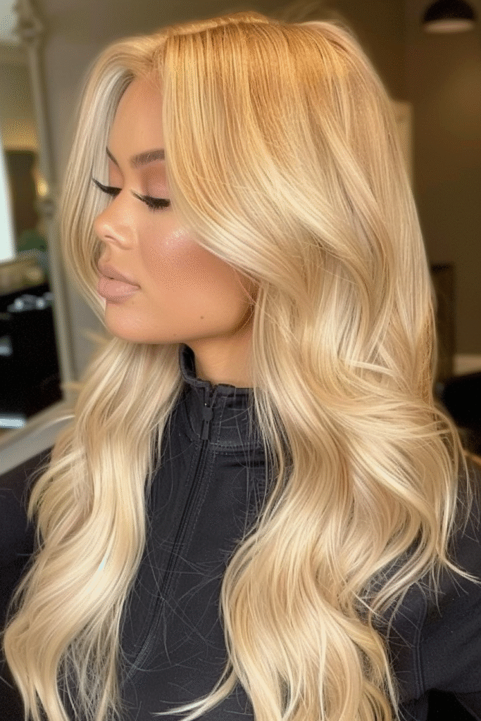 This style focuses on blending multiple warm blonde shades—golden, honey, and buttery—into soft waves that highlight the color’s depth. It’s a glamorous yet wearable look.