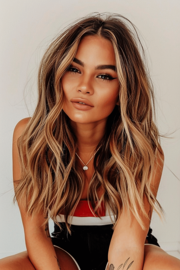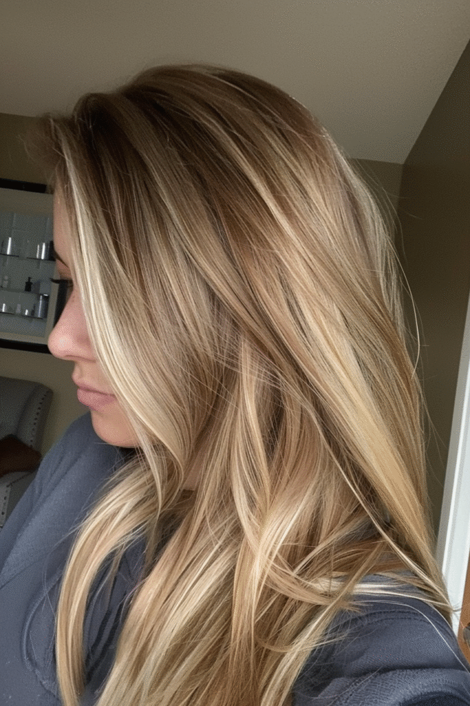 This rich blonde combines caramel hues with multiple highlight shades, ranging from golden to honey, for a multidimensional effect. It’s especially flattering on brunettes transitioning to blonde.
