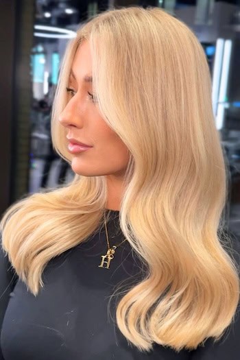 Champagne Blonde is a chic and glamorous shade that mixes warm golden tones with cooler, pale hues, giving the hair a sparkling, multidimensional finish.