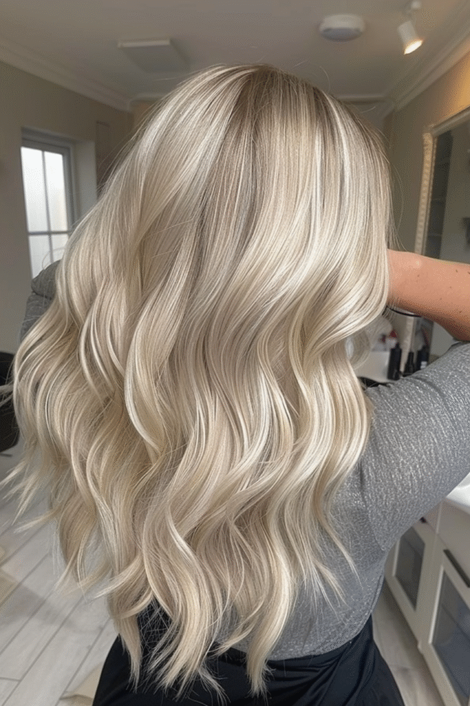 This style combines warm golden blonde tones with flowing waves, creating a radiant and sunlit effect. It’s vibrant and youthful, perfect for those who want their blonde to glow.