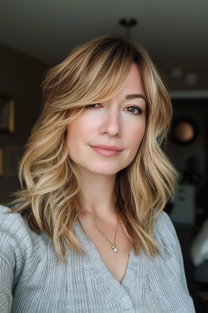 - Curtain Bangs: Frame the face and make blonde shades pop.