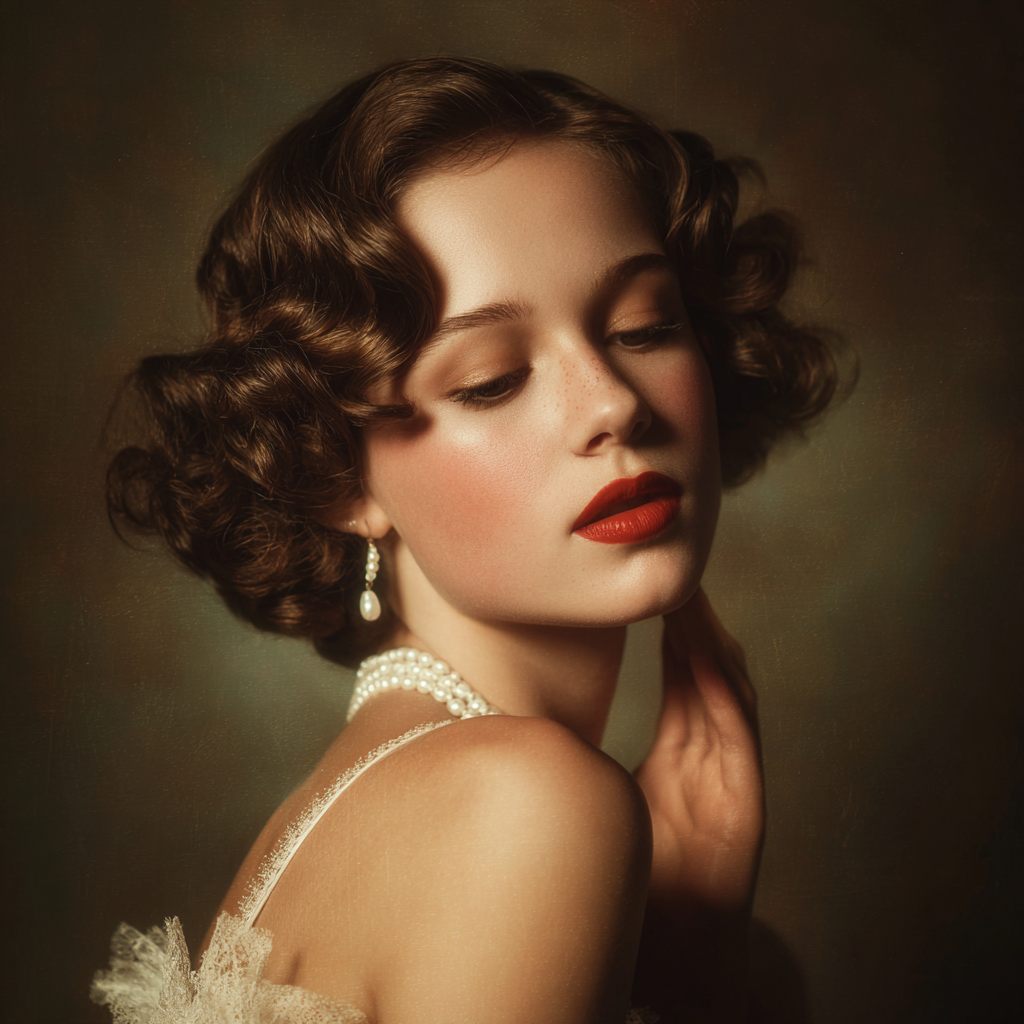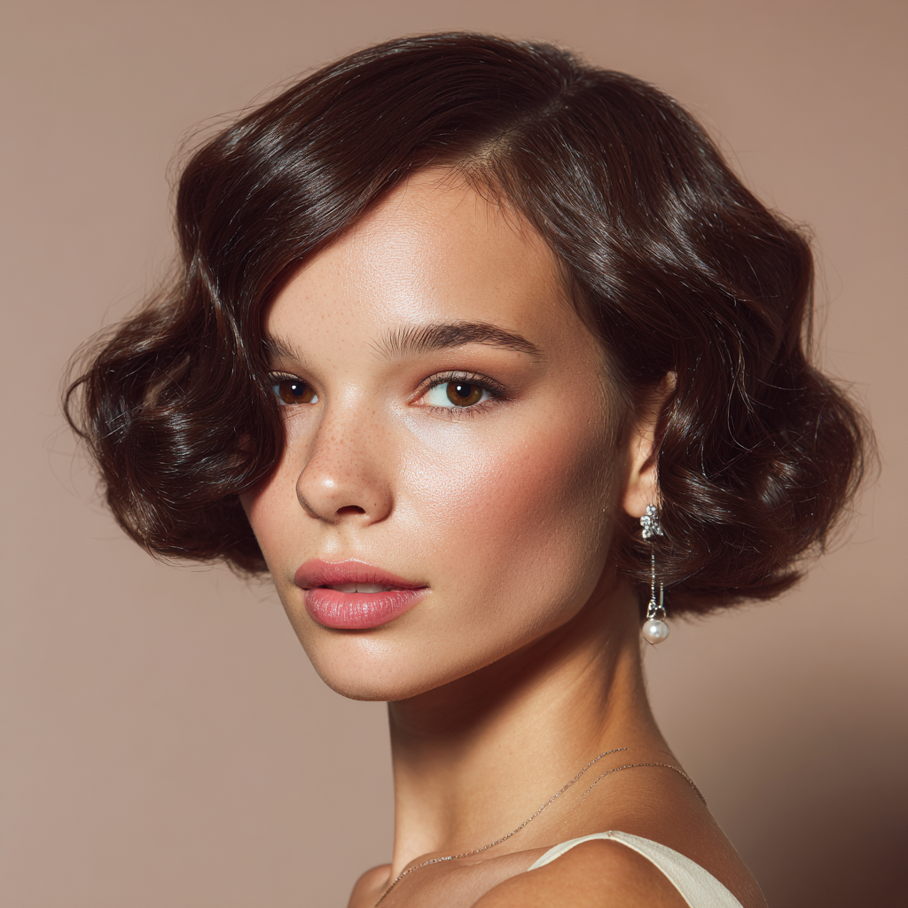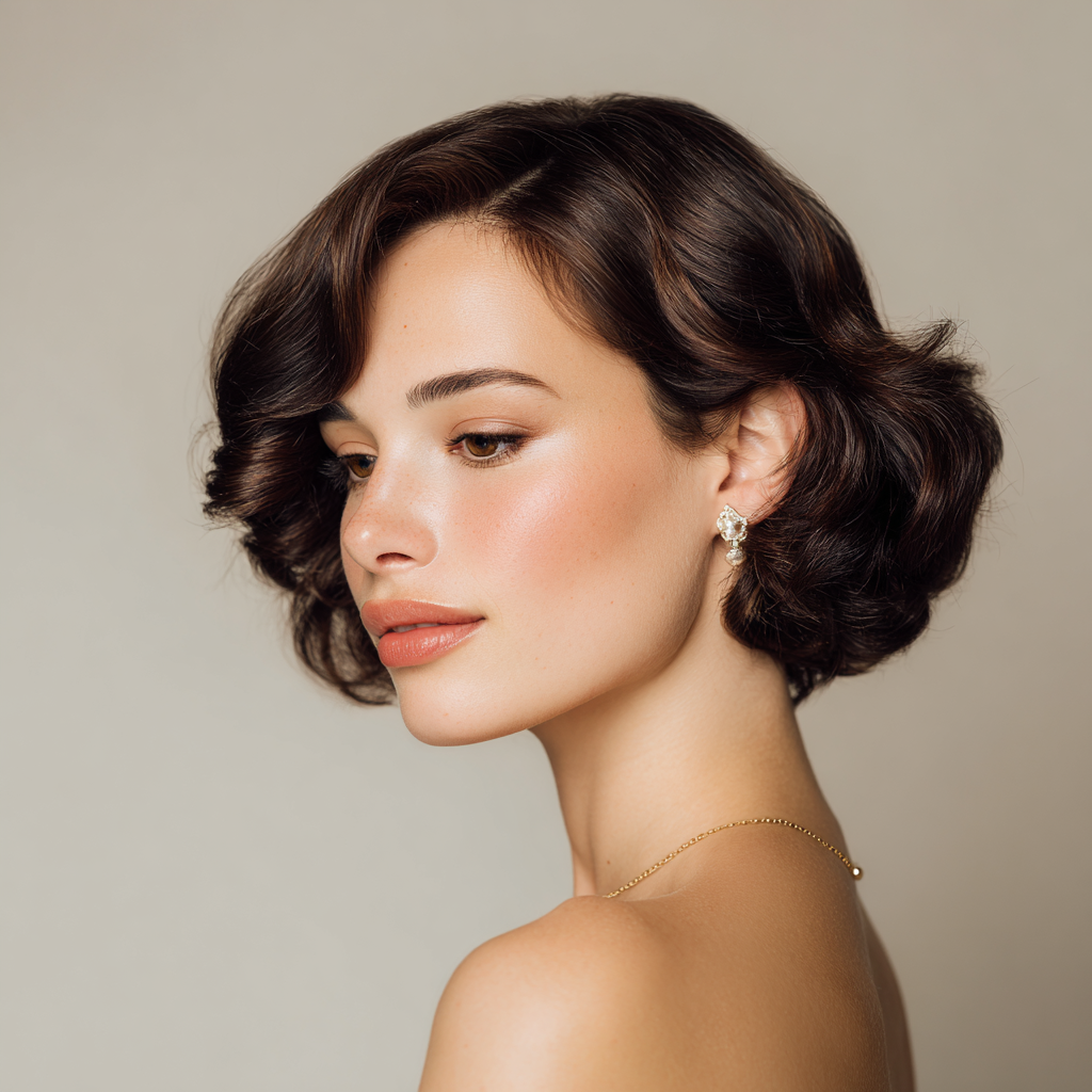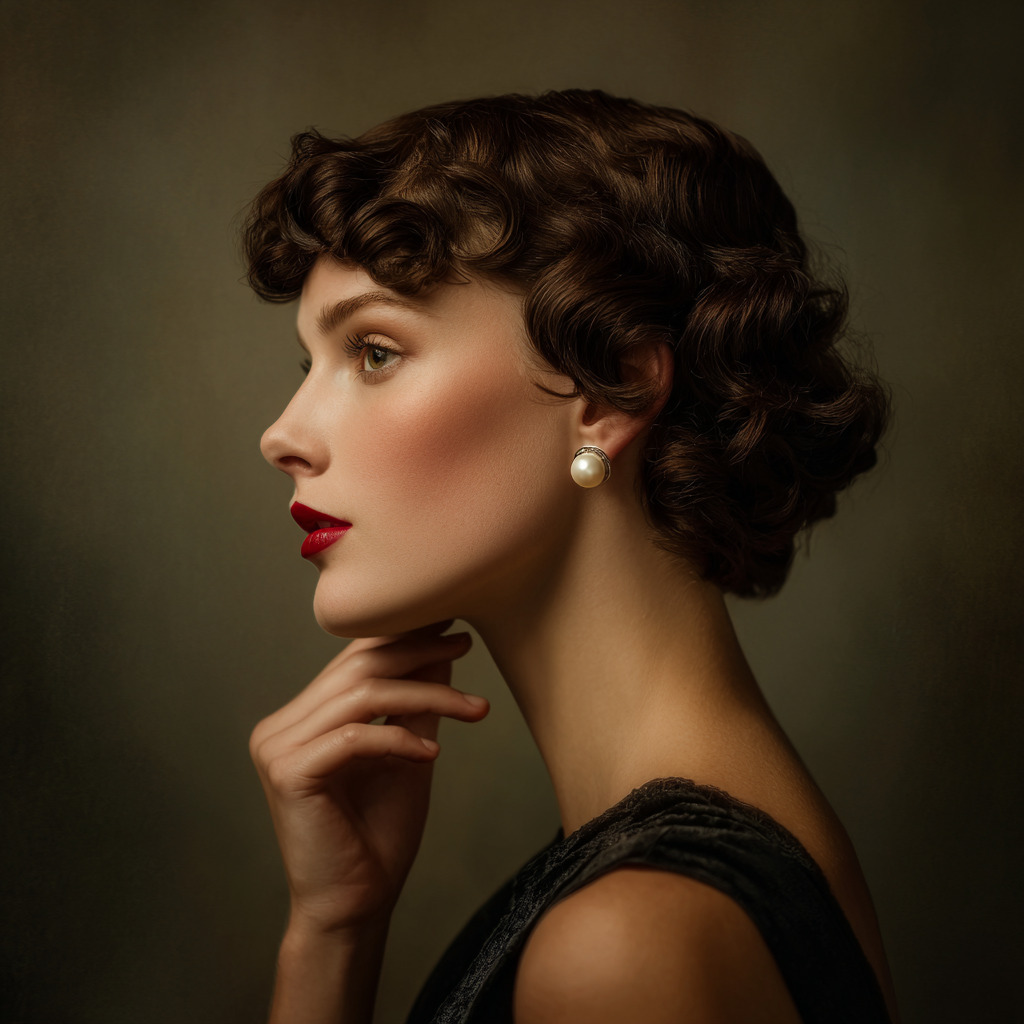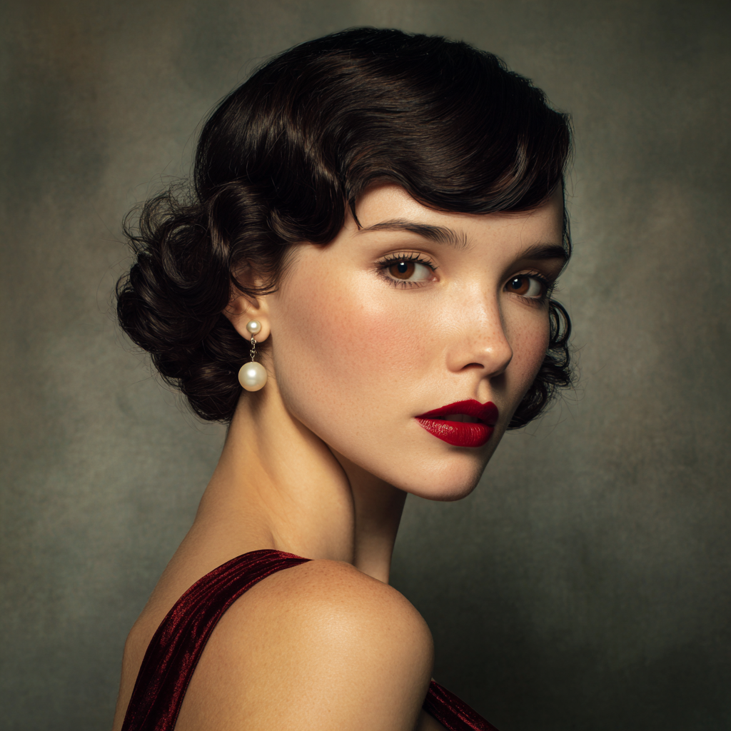 Retro finger waves bring back 1920s glamour with their sleek, sculpted curls and glossy finish. This short curly style radiates vintage sophistication, perfect for formal events or statement looks.