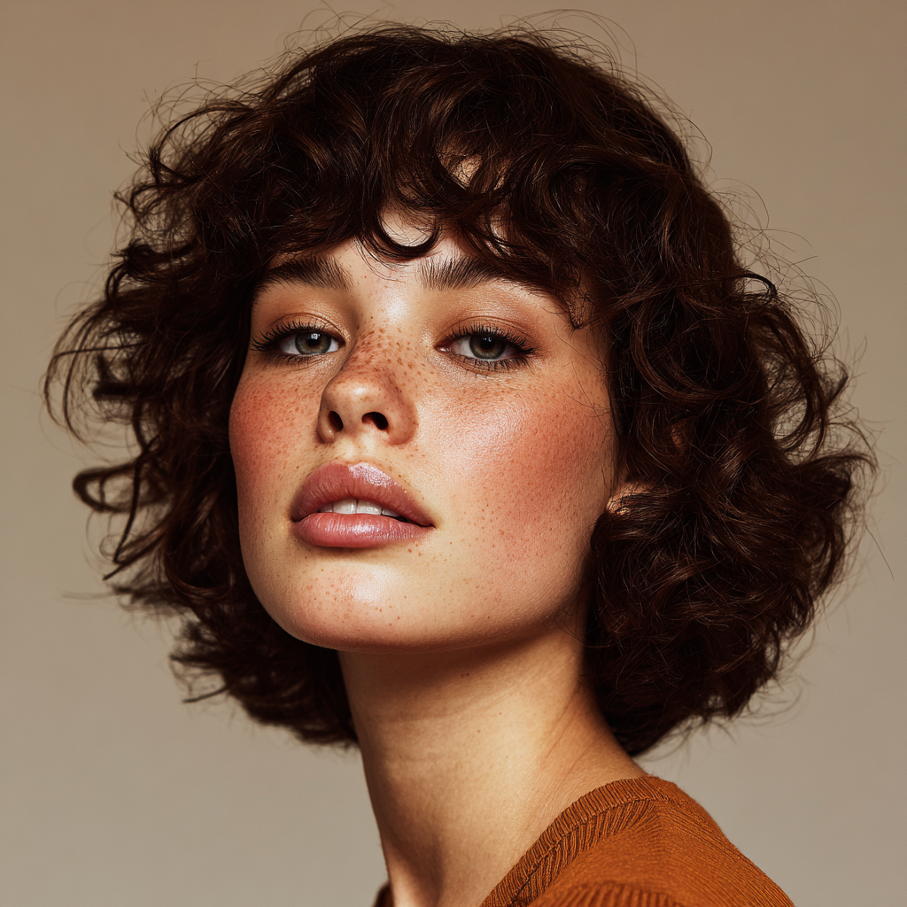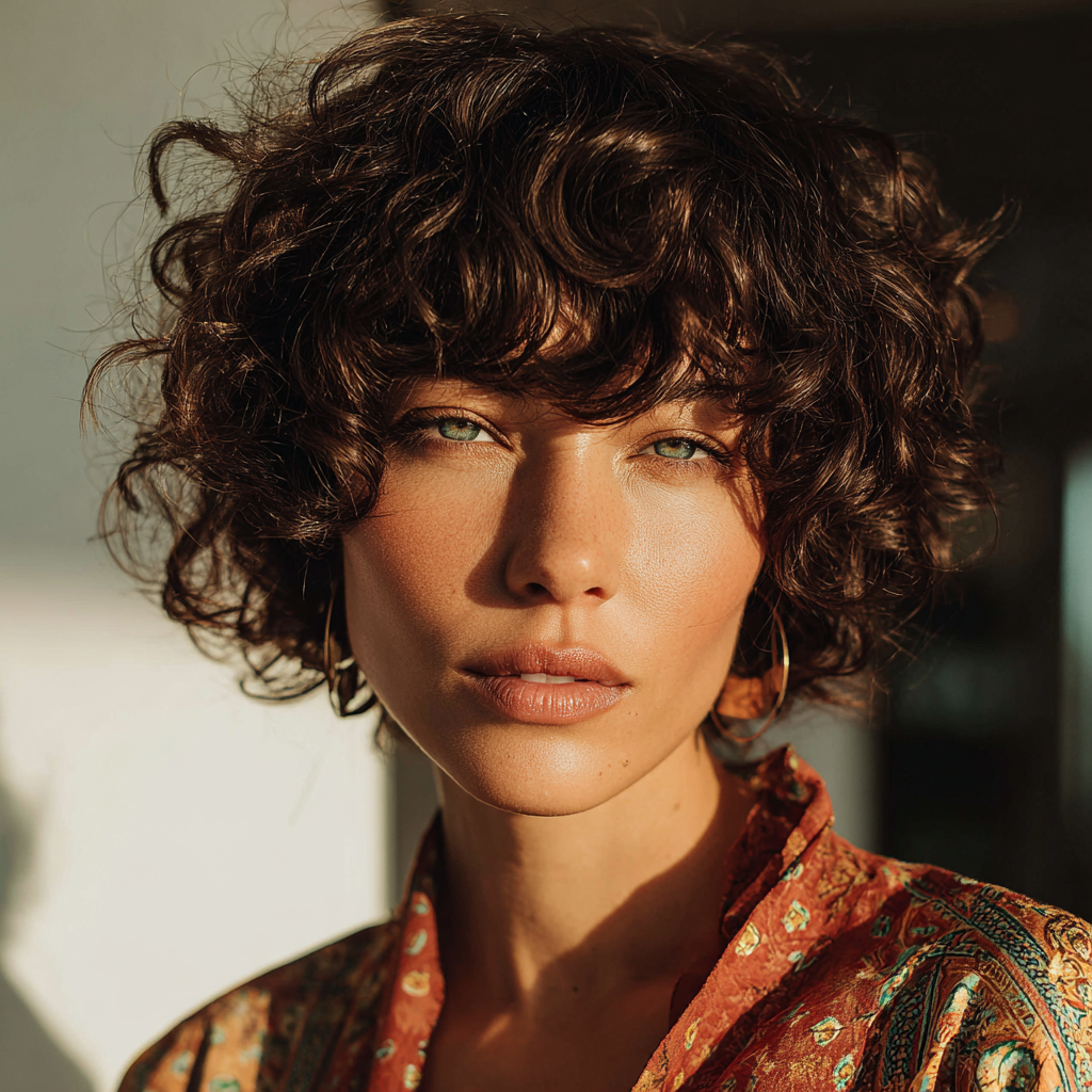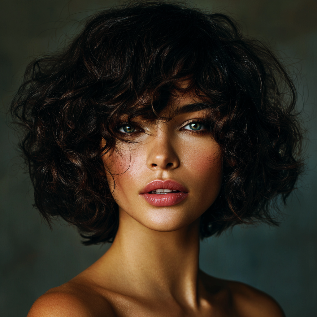 Curly hair with bangs gives a playful yet polished vibe that complements every curl type. The soft fringe frames your eyes beautifully and adds youthful charm to any short hairstyle.