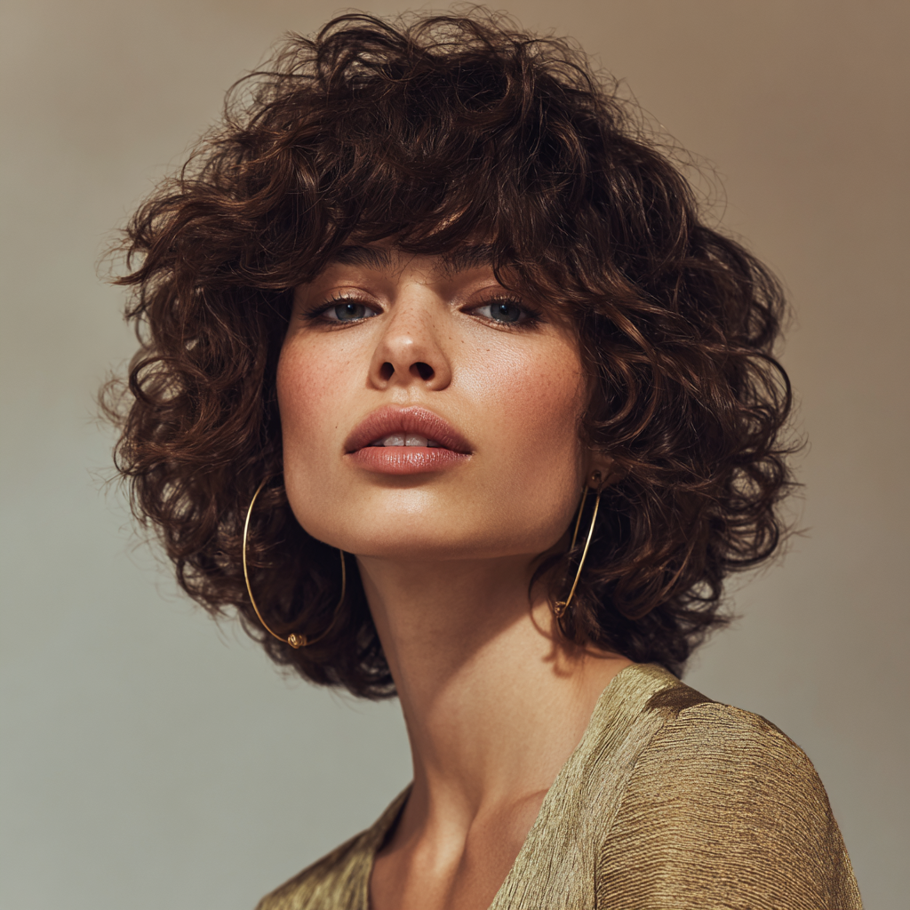 The curly shag cut combines layers and texture for a free-spirited, effortlessly chic look. It’s ideal for women who love movement and volume in their curls without too much styling effort.