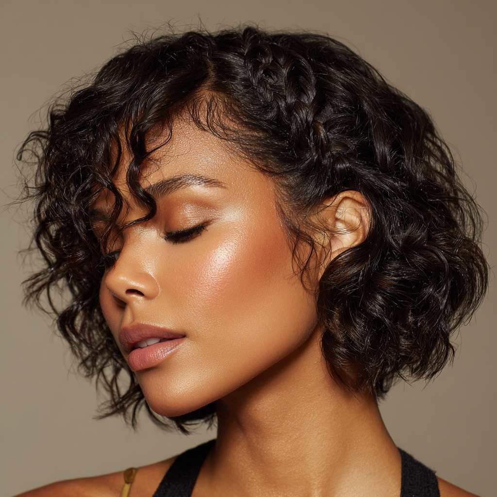 The curly bob with a side part is timeless and elegant, perfect for women who love effortless glamour. The deep part adds volume and gives your curls a soft, face-framing shape that enhances natural texture.