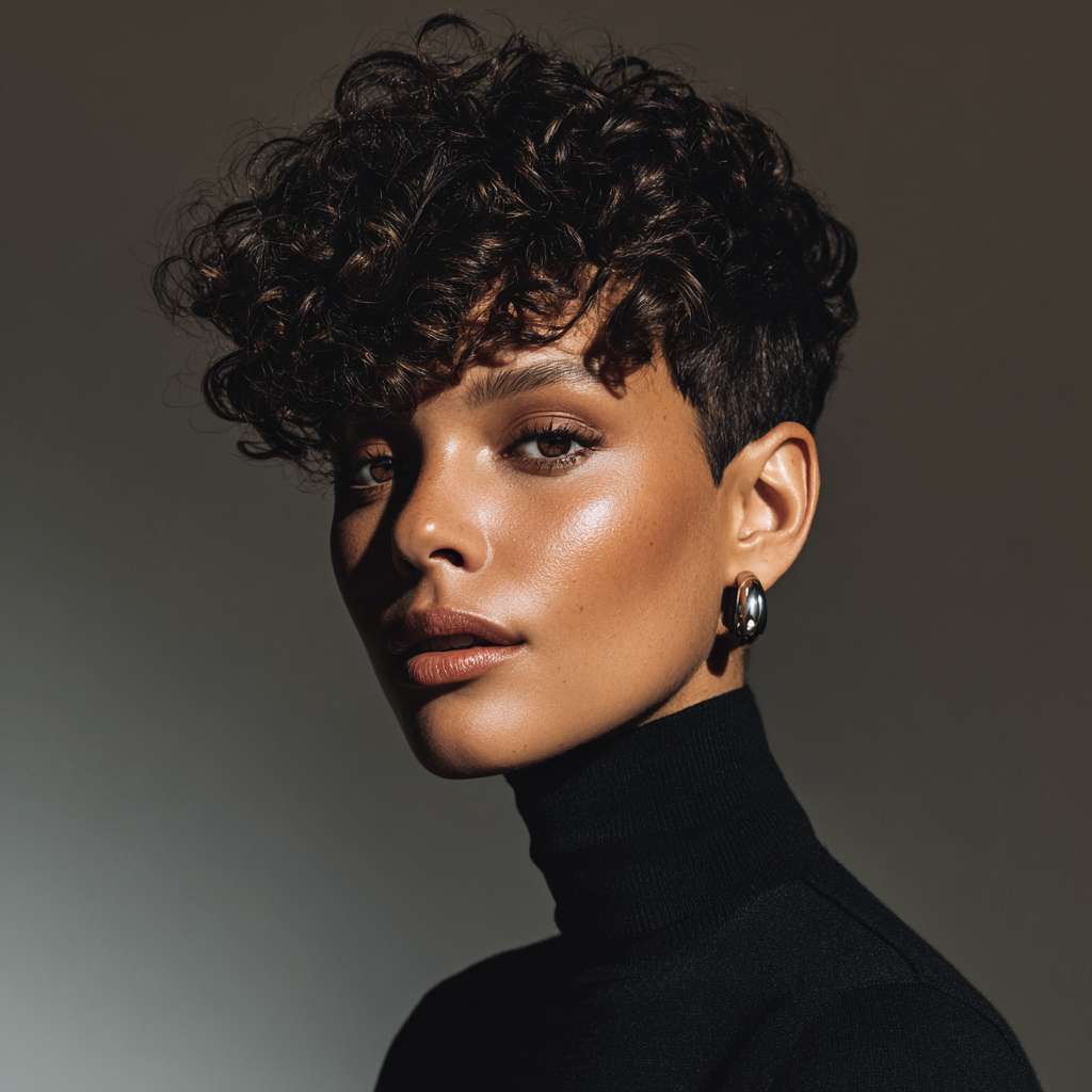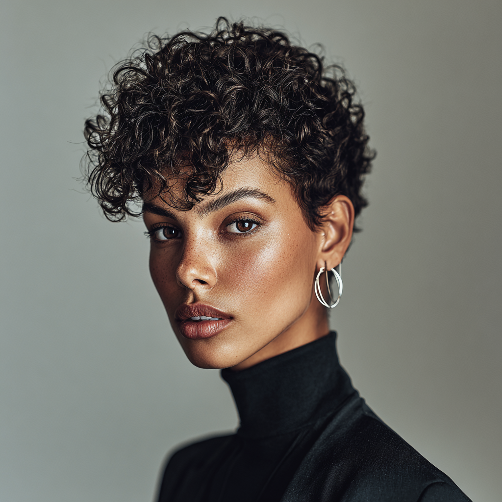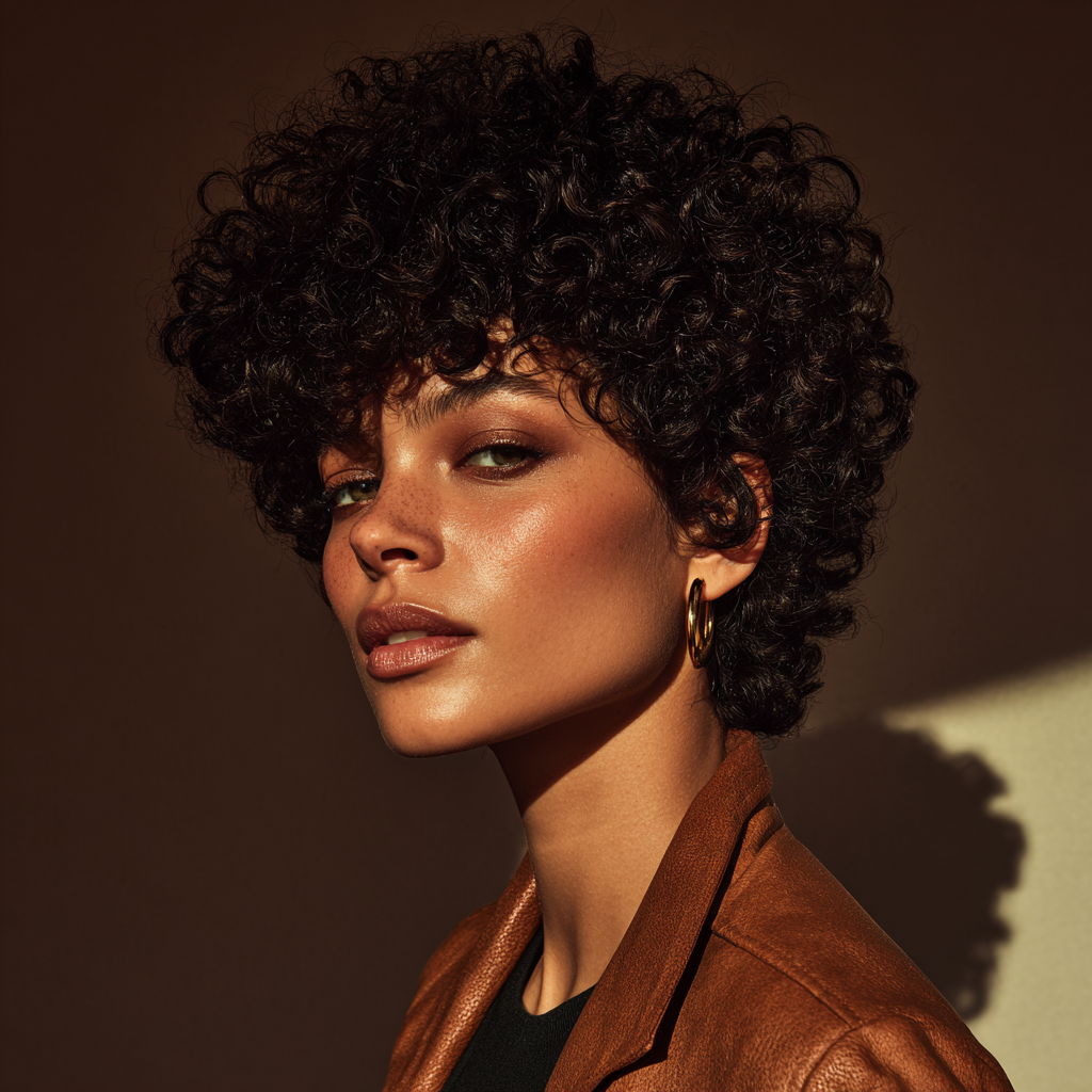 A short curly pixie cut exudes confidence and charm while showing off your natural curl pattern. It’s bold yet feminine, giving you a chic, low-maintenance look that stands out anywhere.