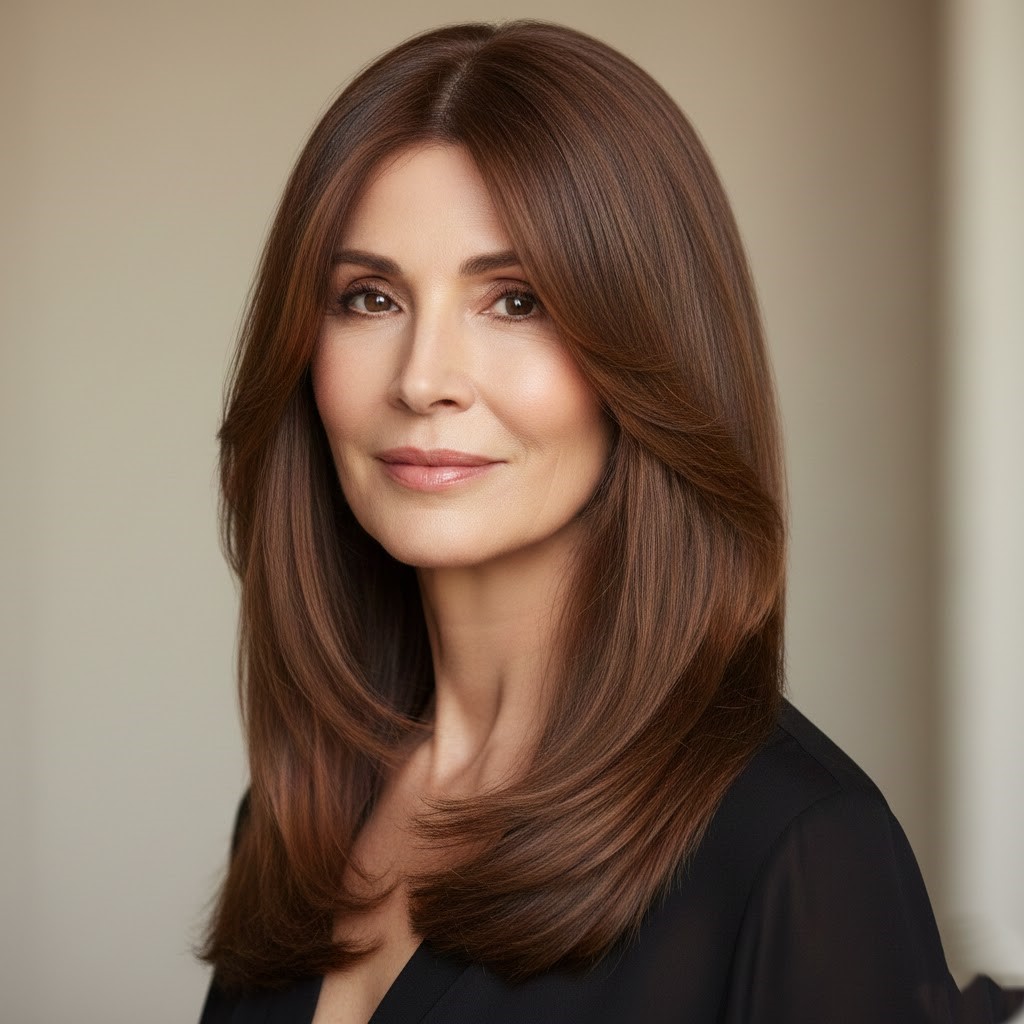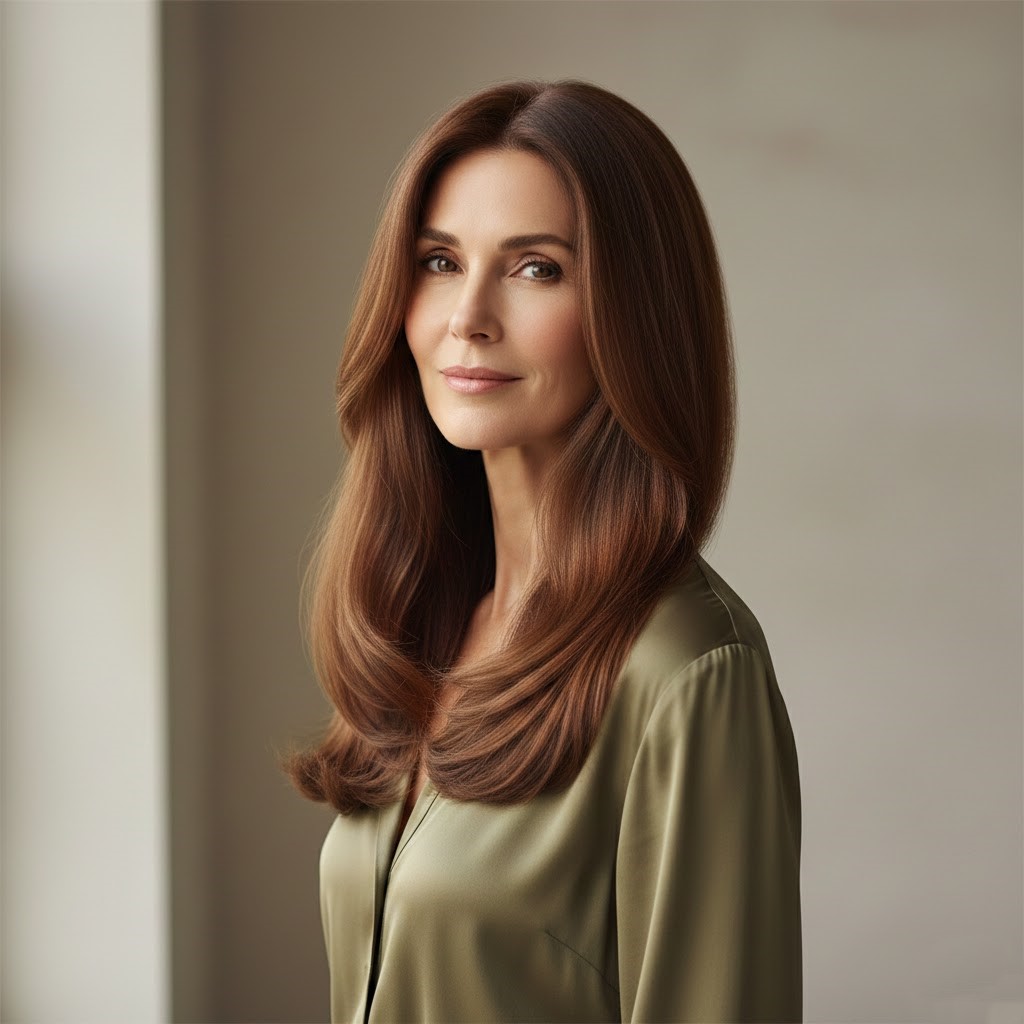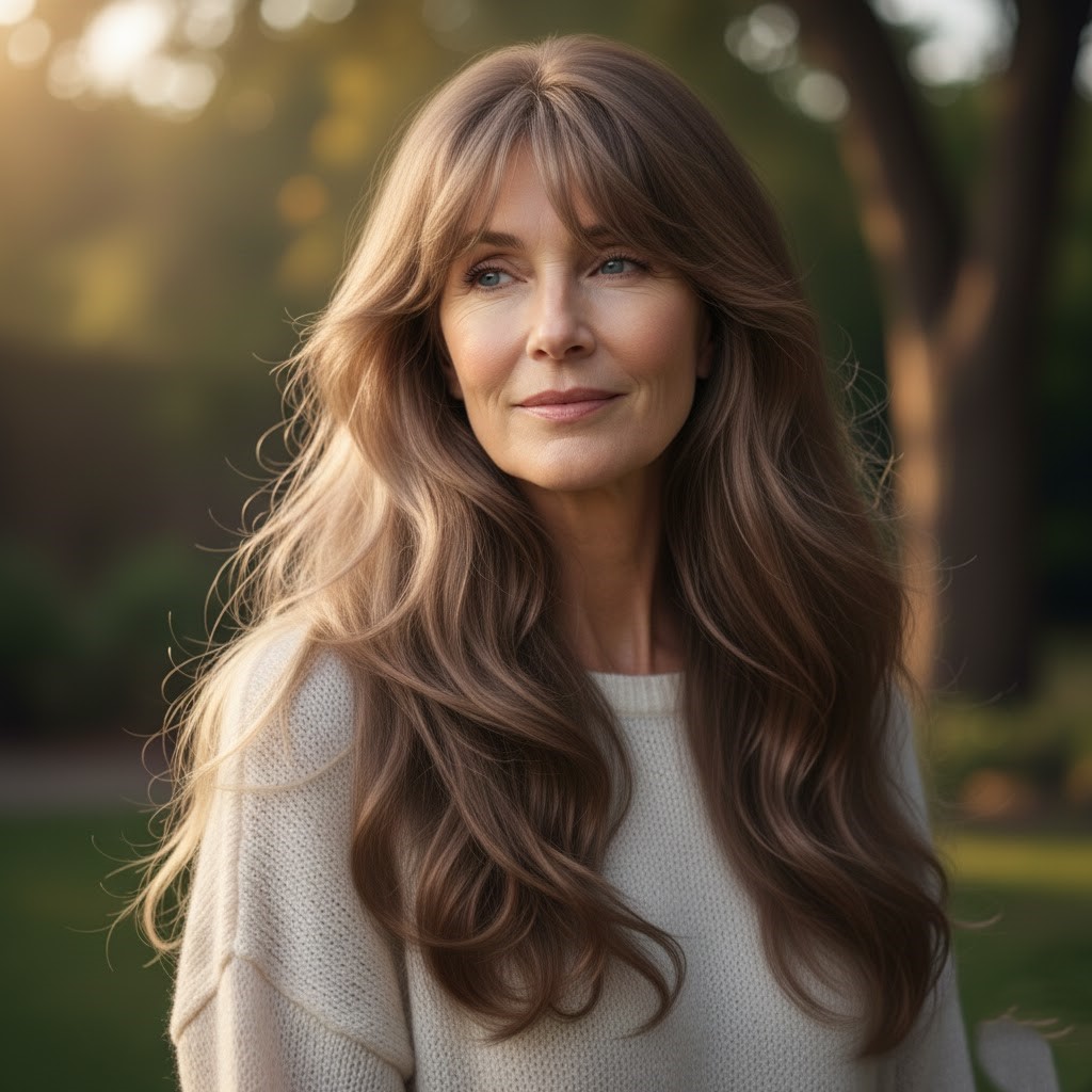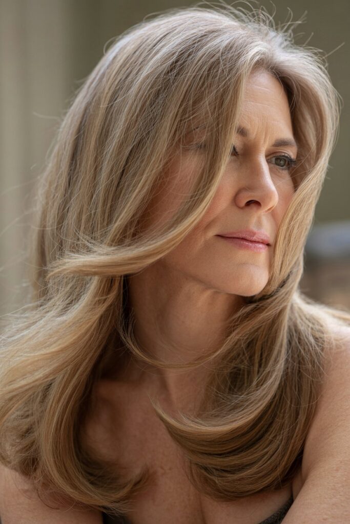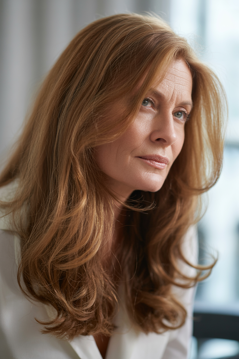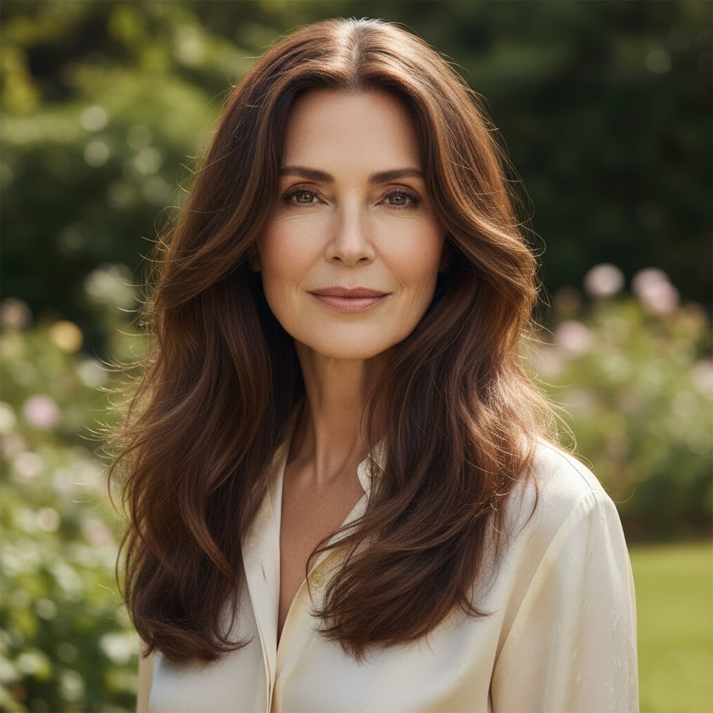 This style is ideal for mature women wanting long hair that feels modern and fresh.