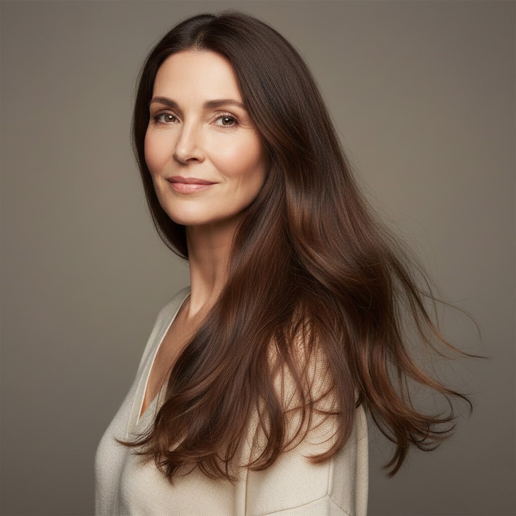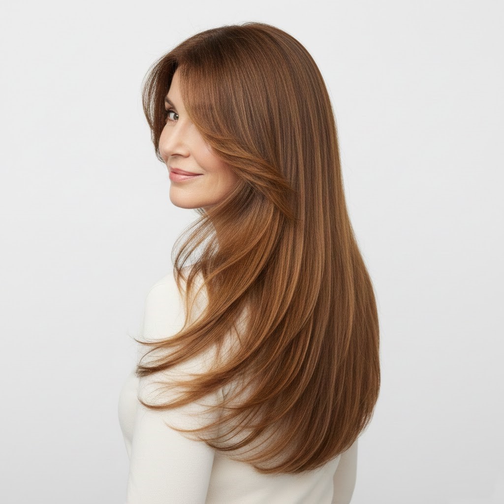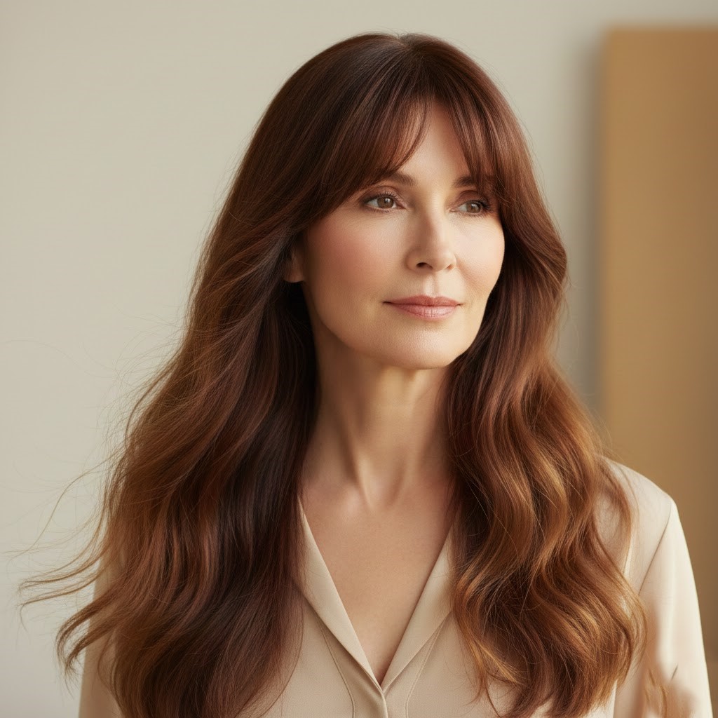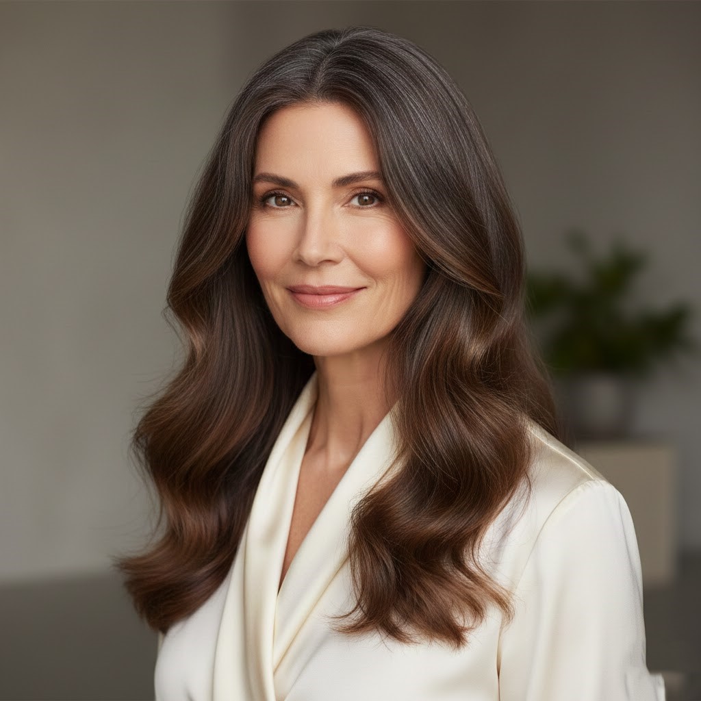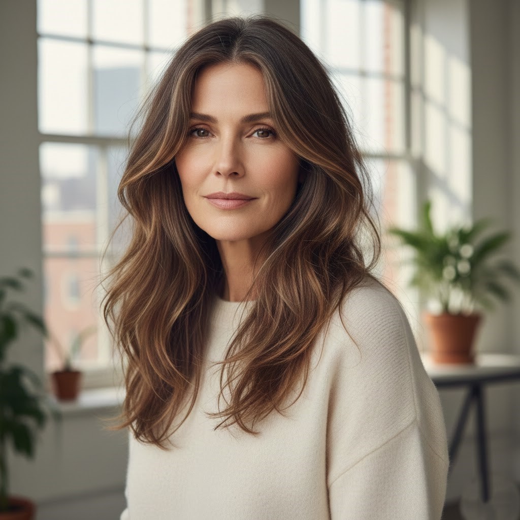 This style is ideal for mature women wanting long hair that feels modern and fresh.