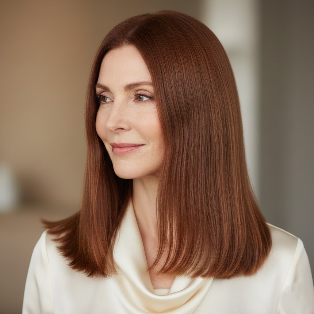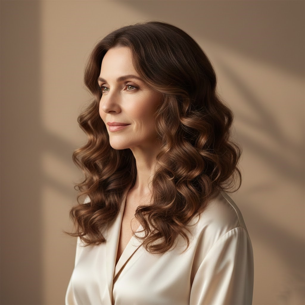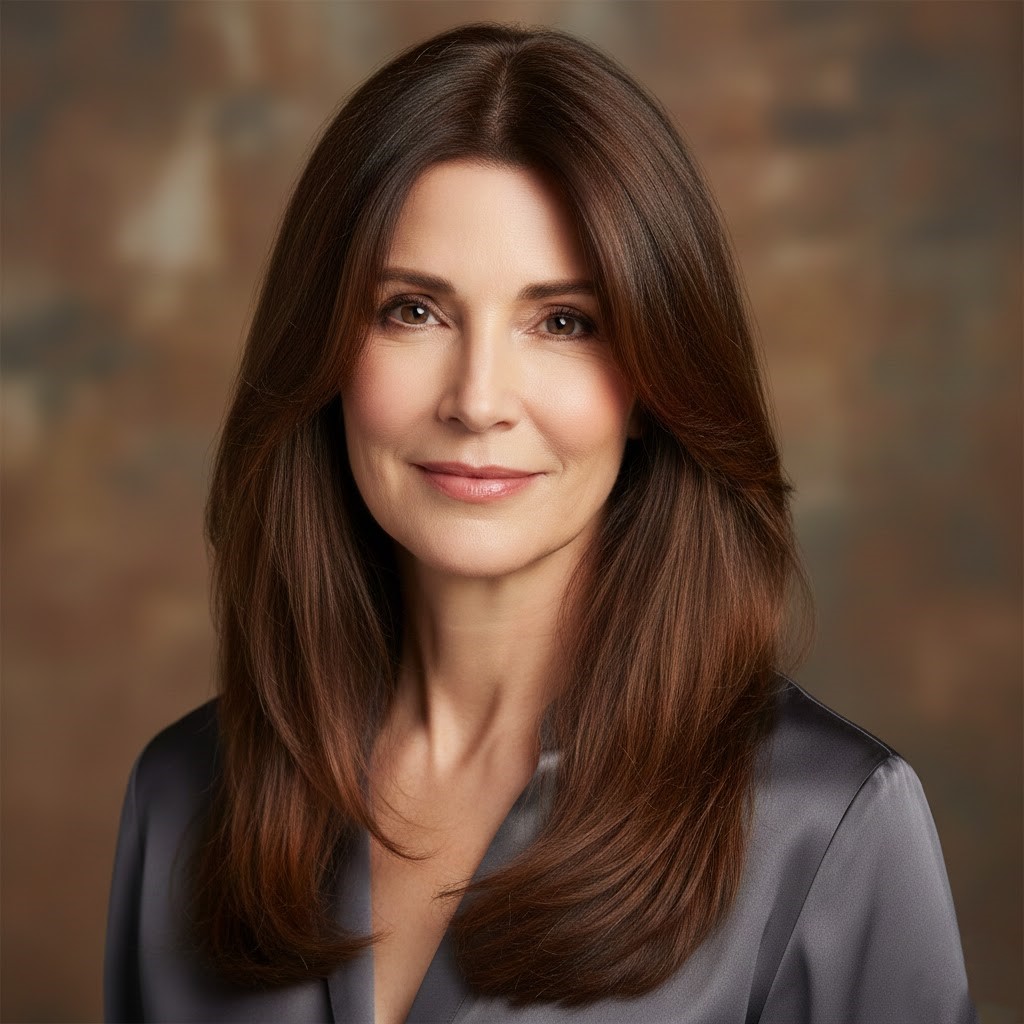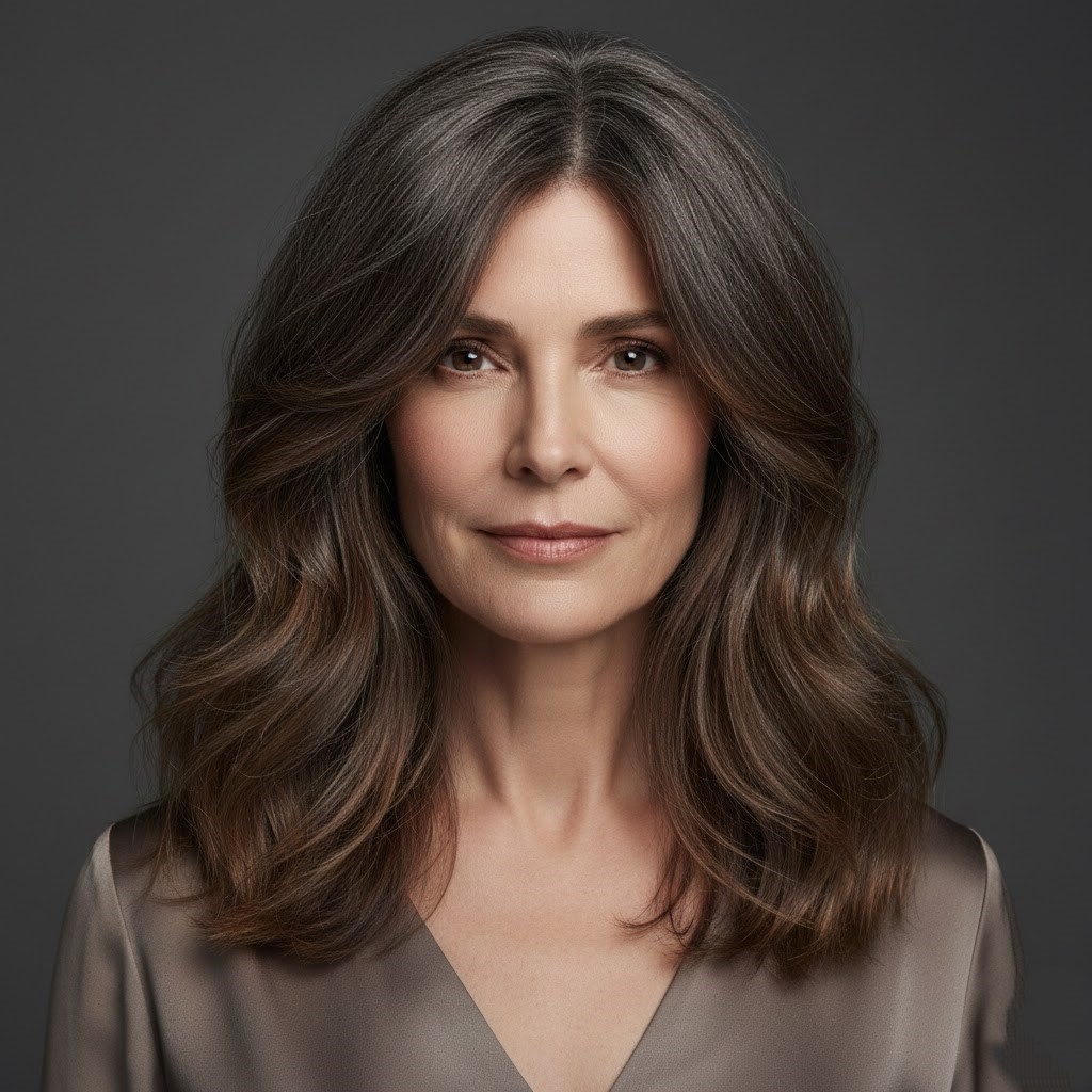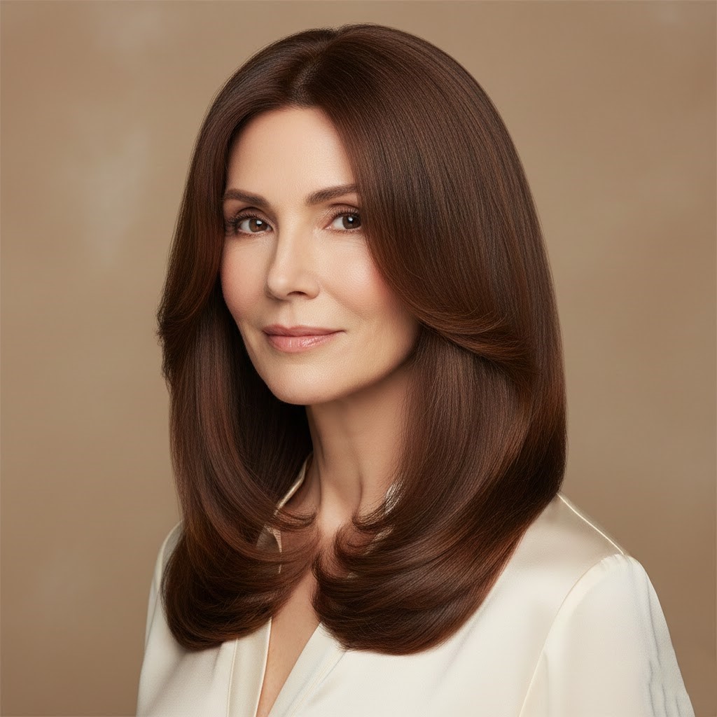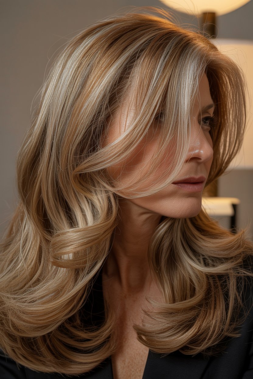 This style is ideal for mature women wanting long hair that feels modern and fresh.