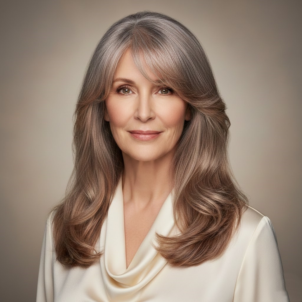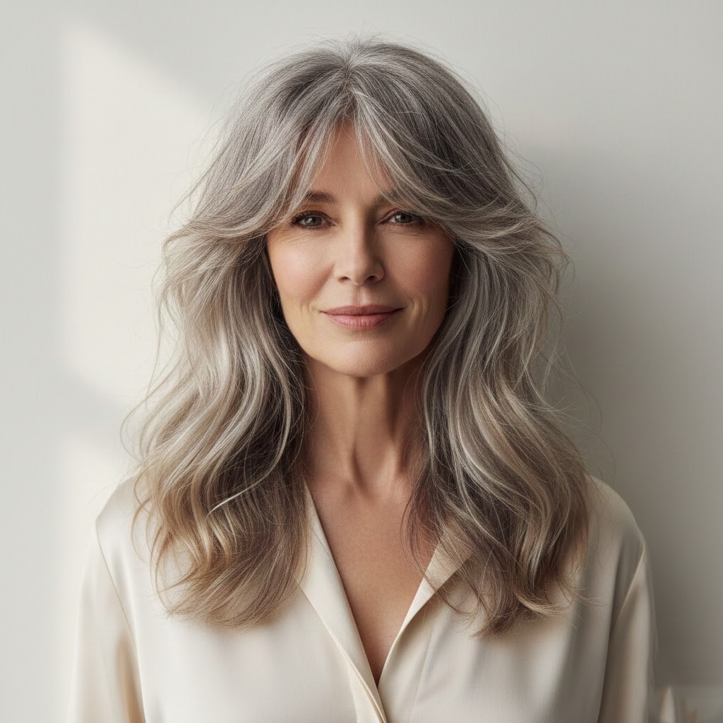With the right shaping, long hair can soften facial features, add movement, and highlight silver, gray, or colored strands beautifully. It’s less about chasing trends and more about choosing styles that feel effortless and refined.