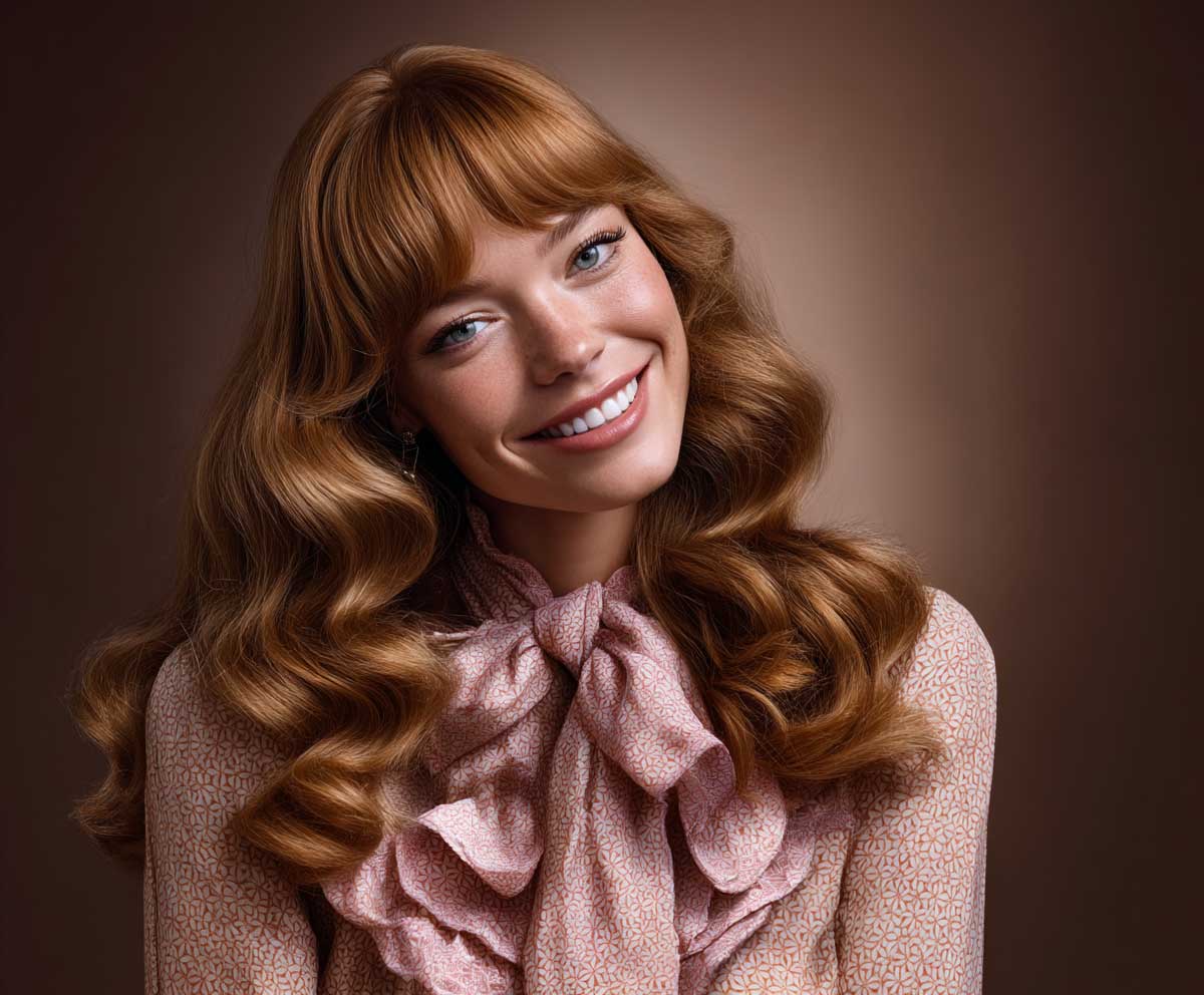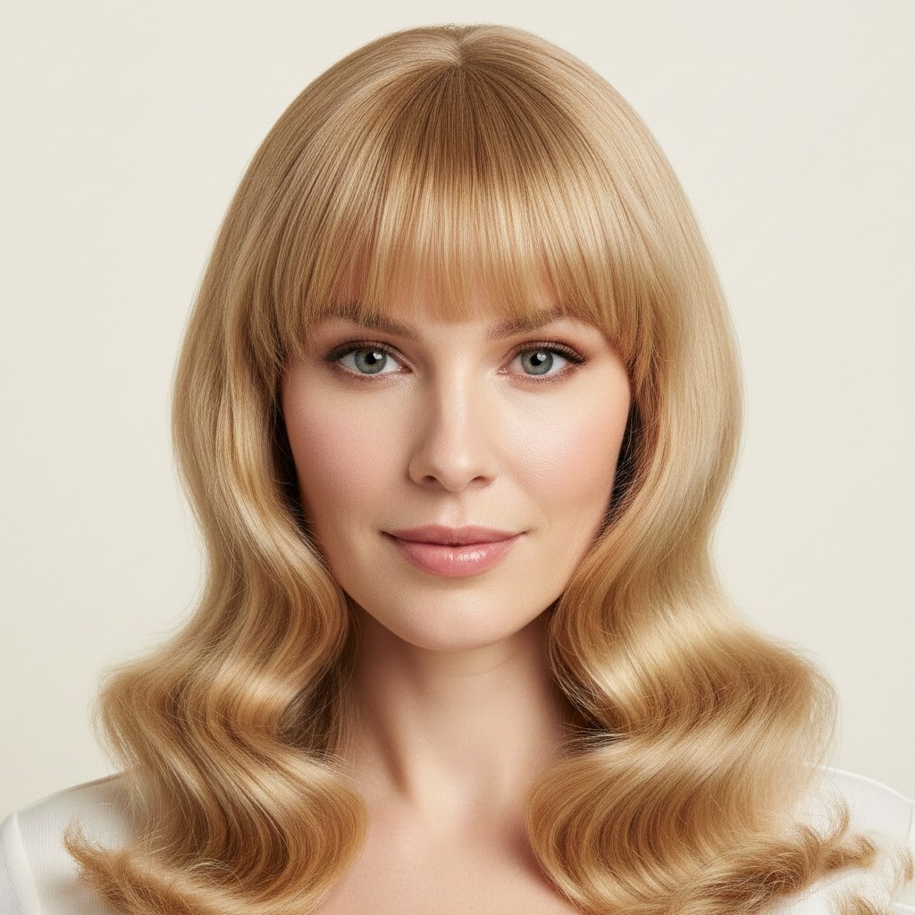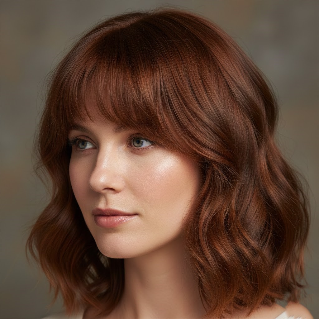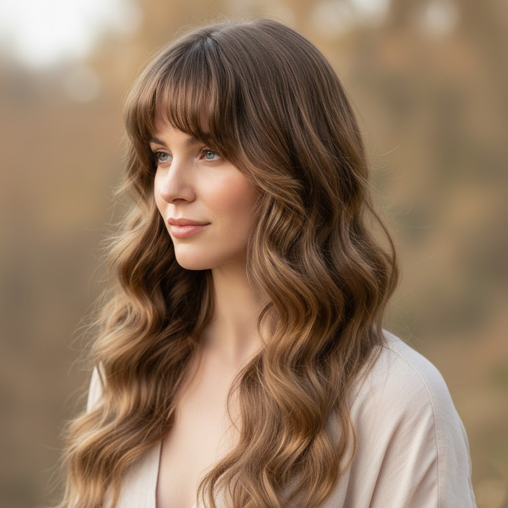 Soft waves with side bangs deliver a relaxed yet refined look. The waves add texture, while the bangs frame the face delicately.