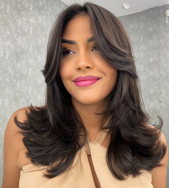 This haircut adds volume and movement without appearing bulky. It’s especially flattering for medium to long hair lengths.
