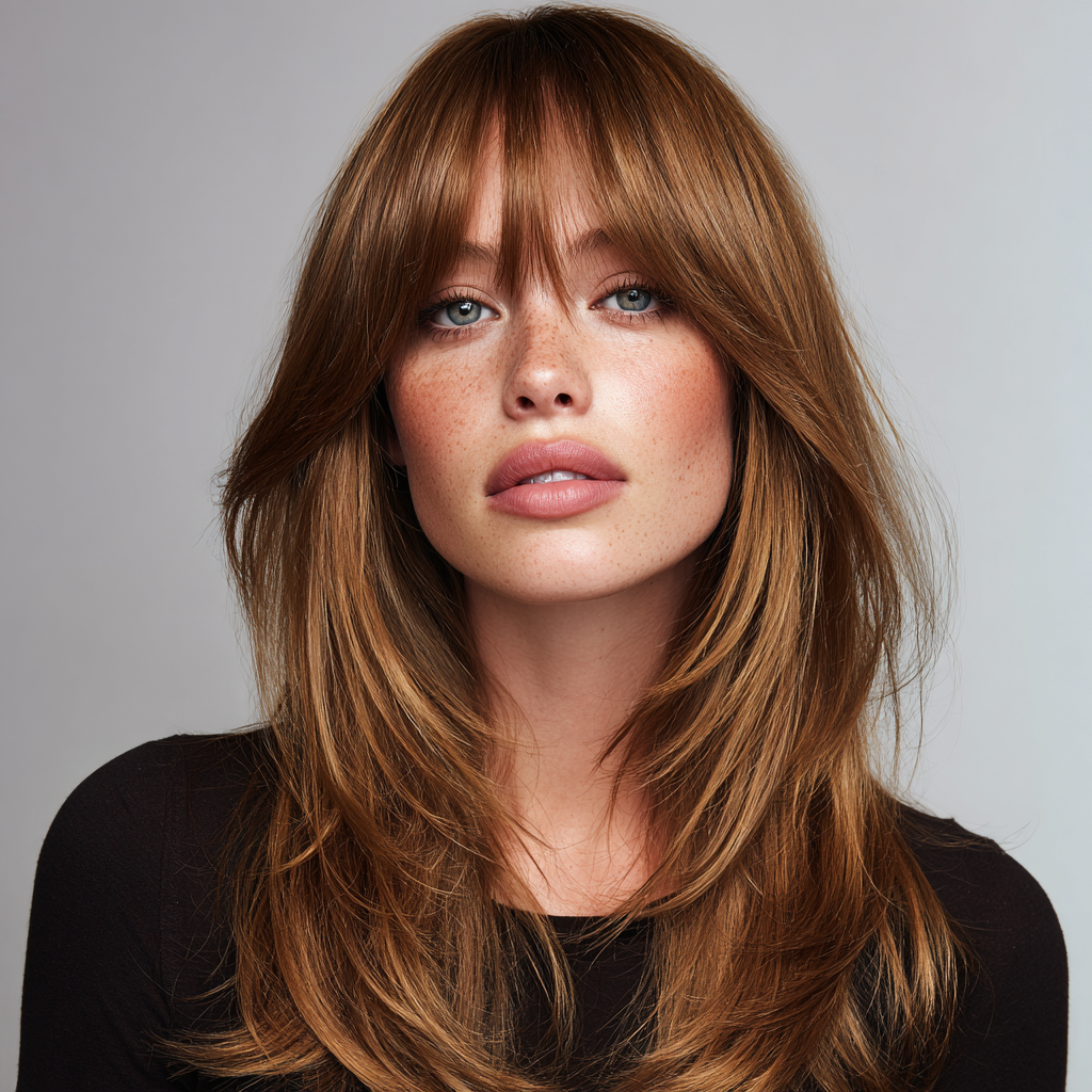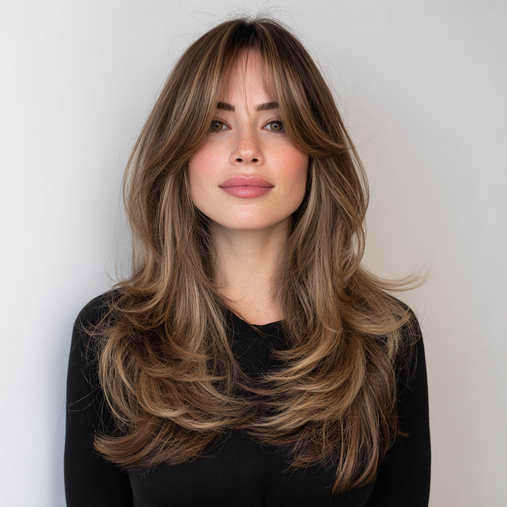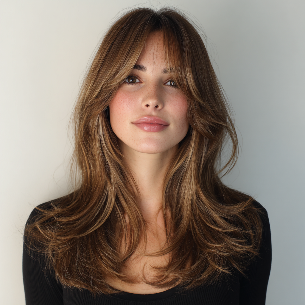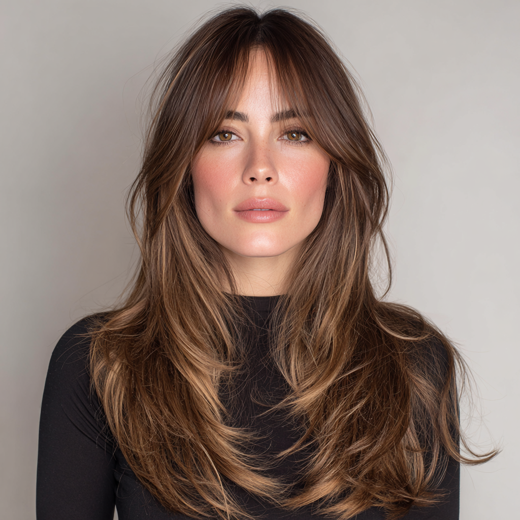 Long Layers with Face-Framing Layers and Curtain Bangs