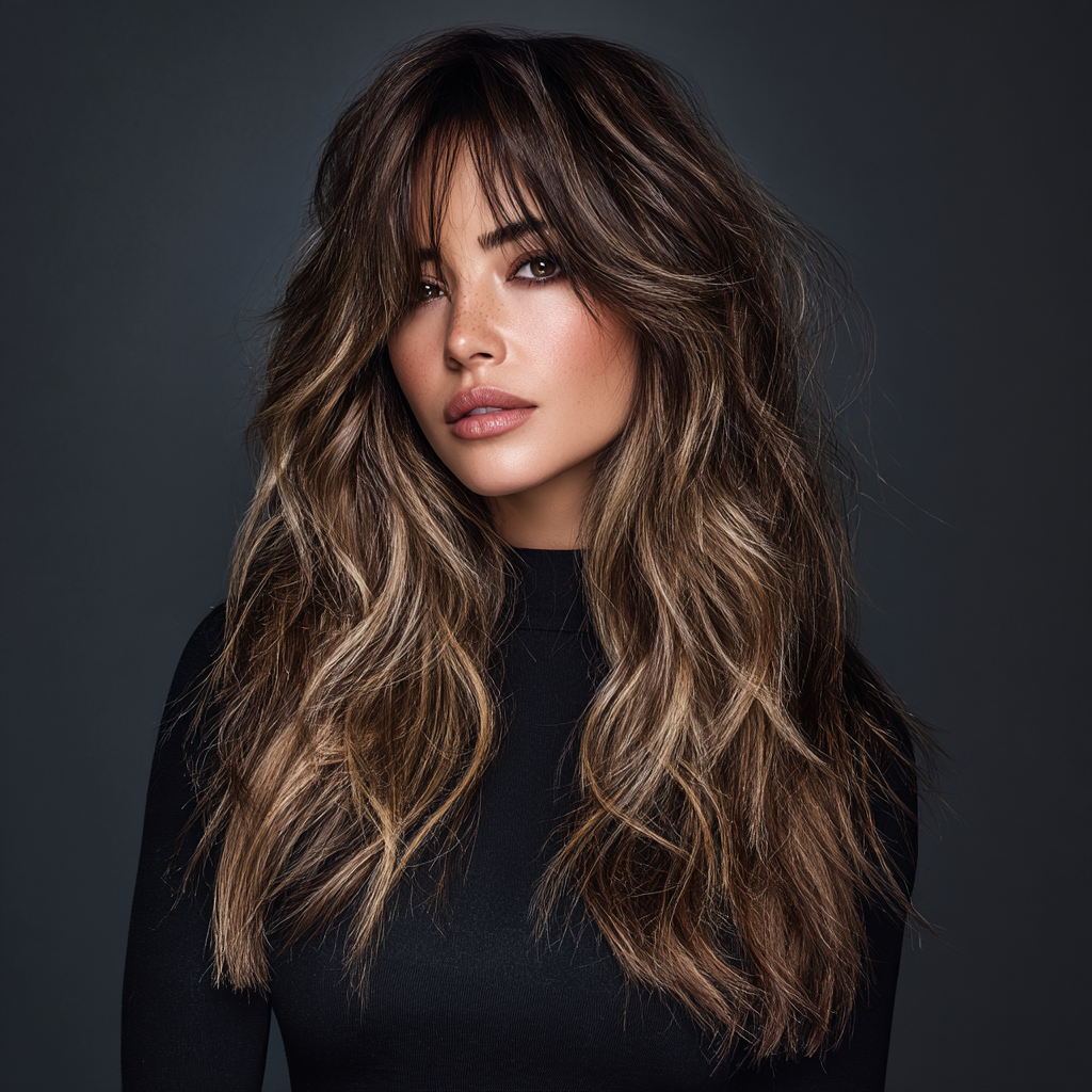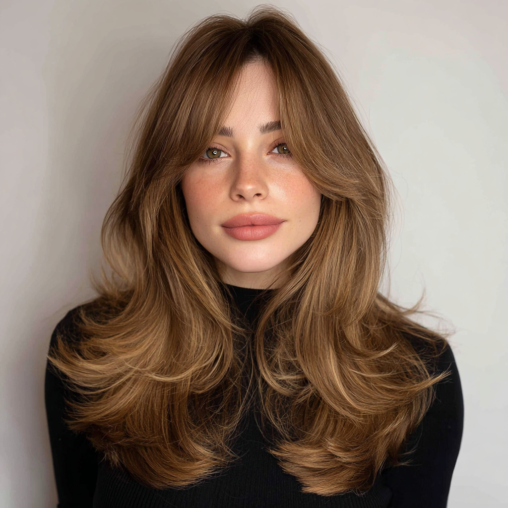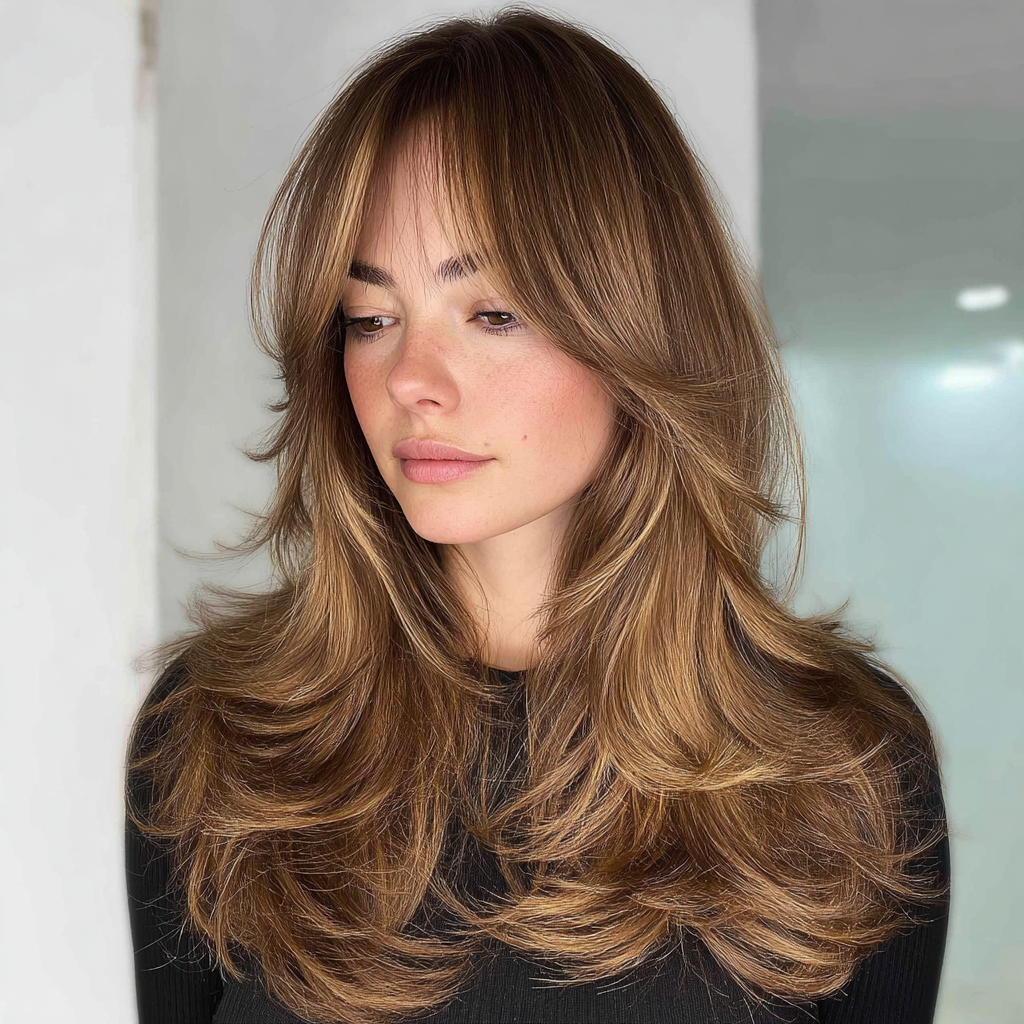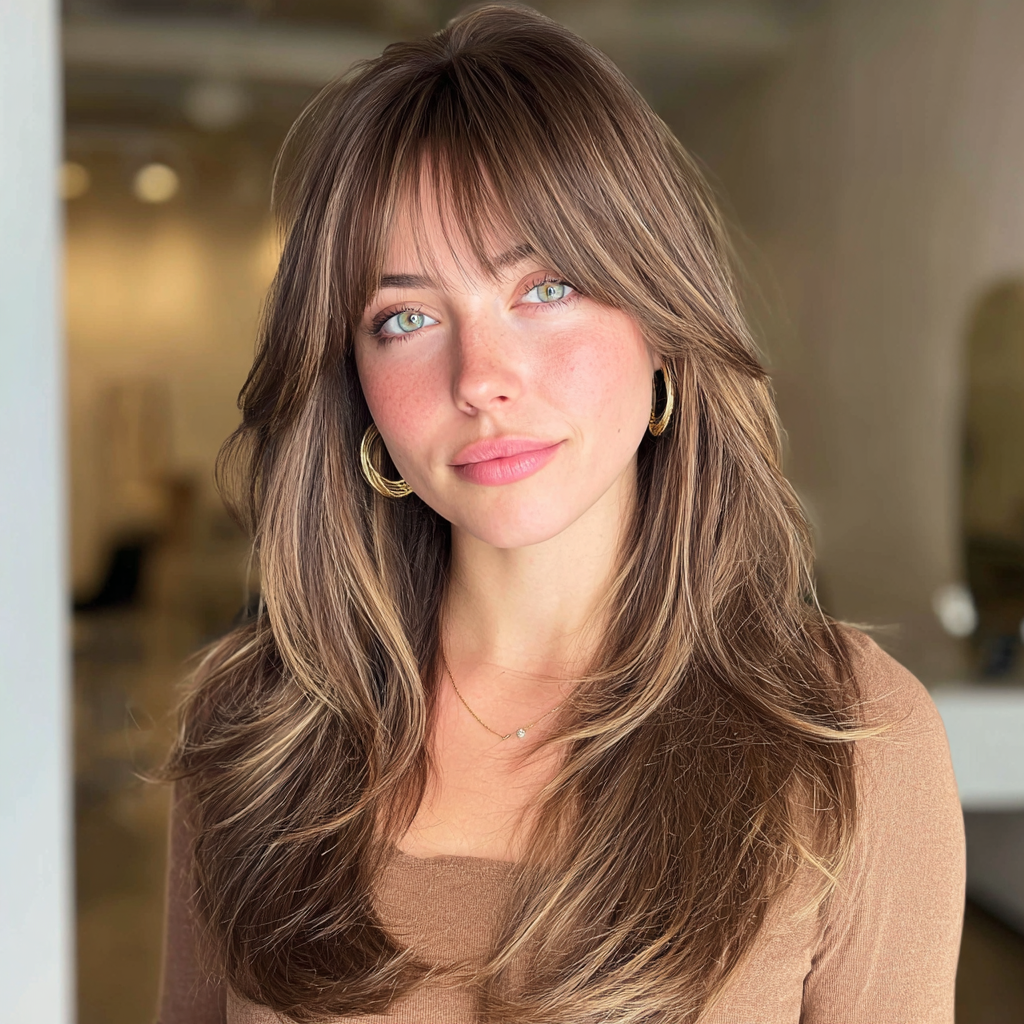 Long Layers with Face-Framing Layers and Curtain Bangs
