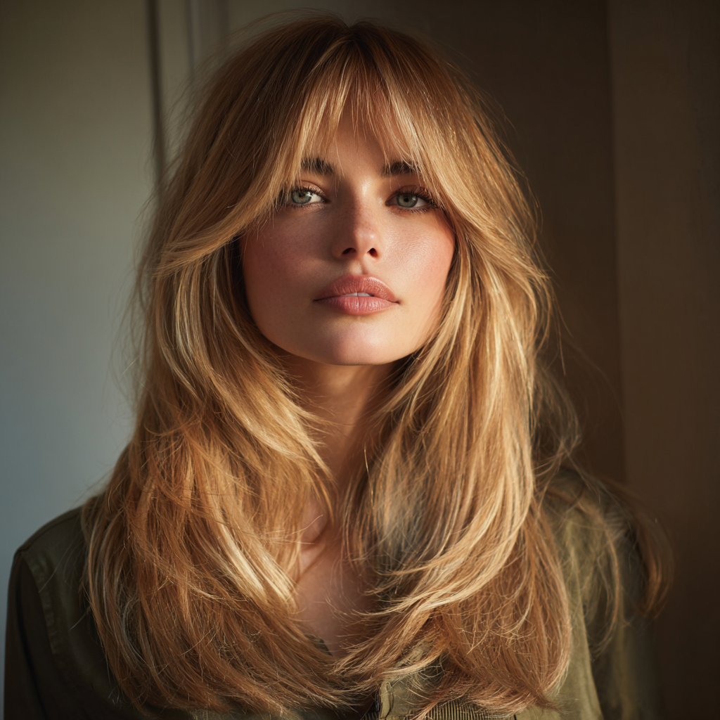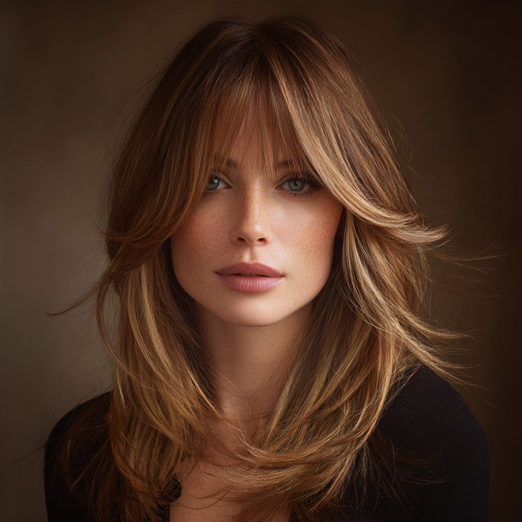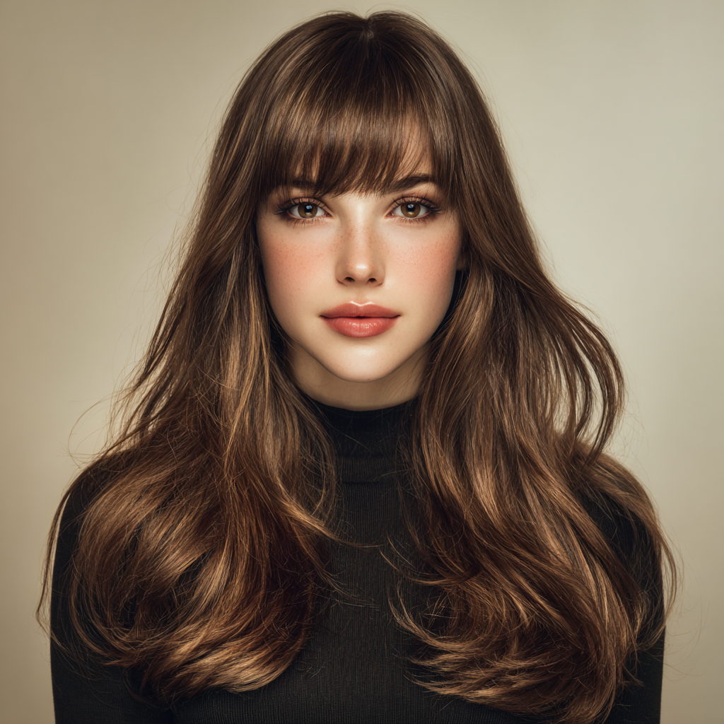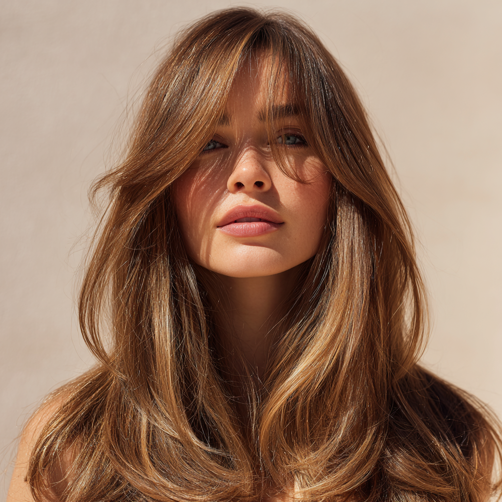Long Layers with Face-Framing Layers and Curtain Bangs