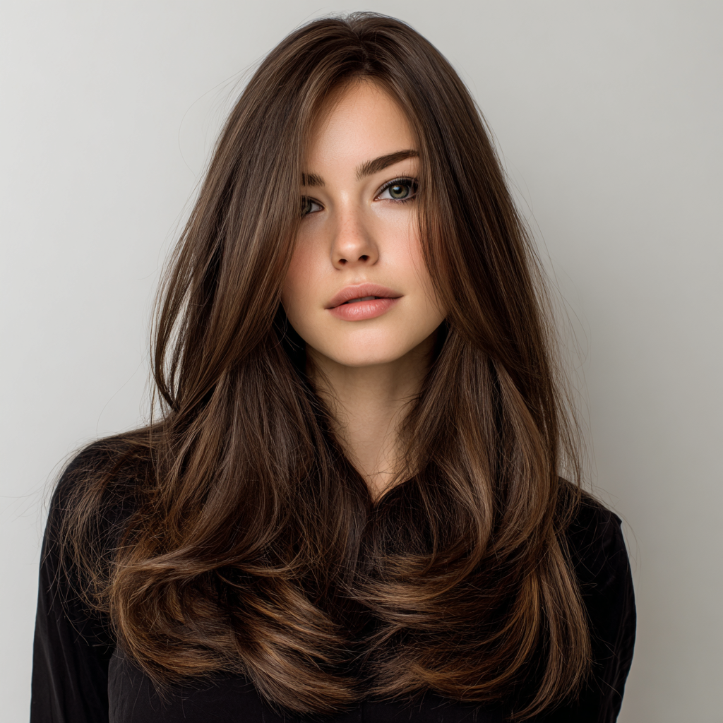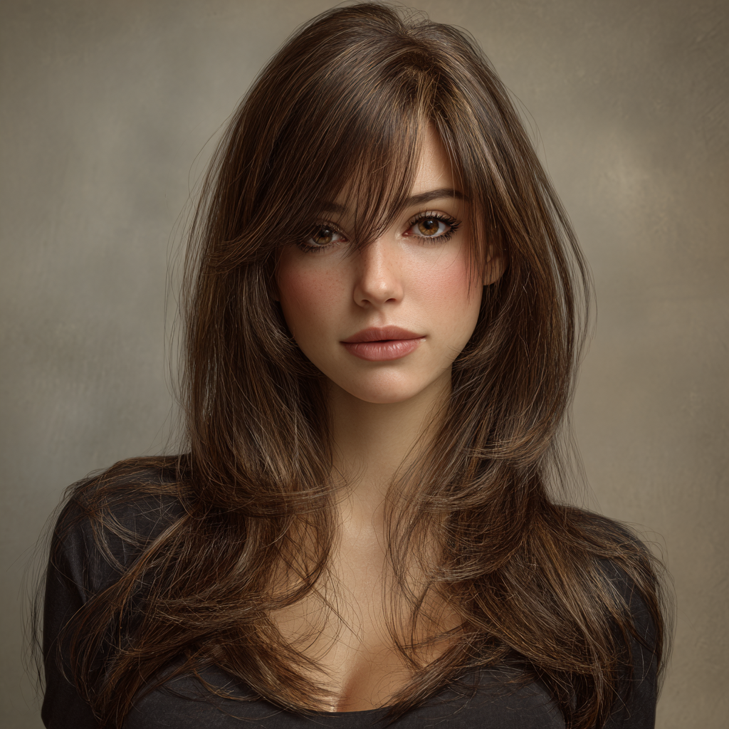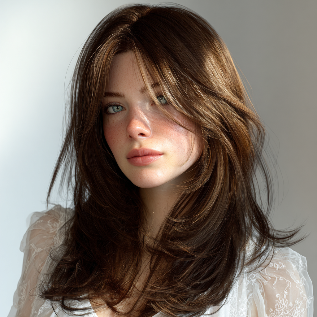 This style enhances natural beauty with delicately cut layers that fall around the face. The soft framing draws attention to the eyes and cheekbones while maintaining the long, flowy length.