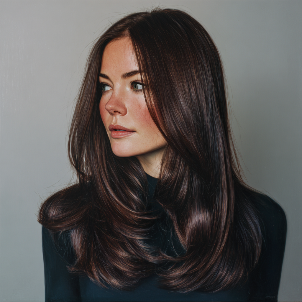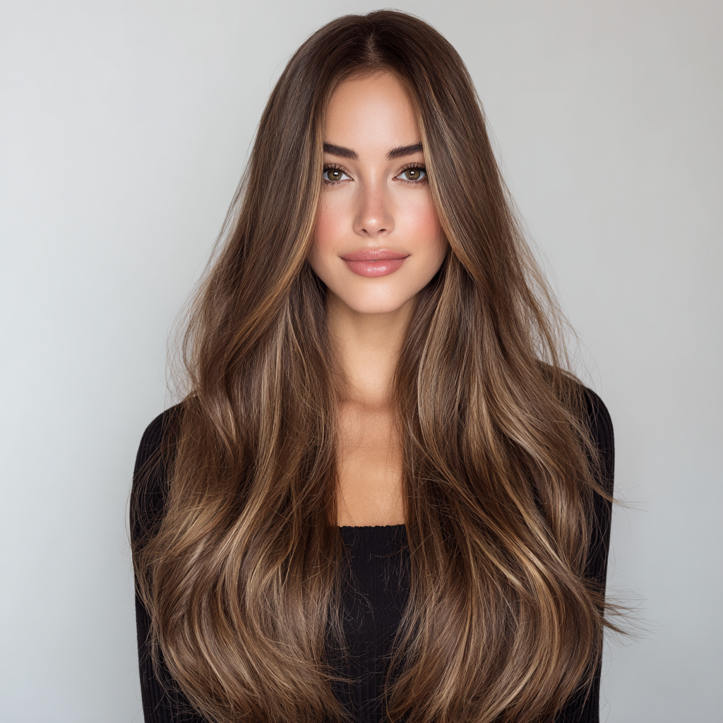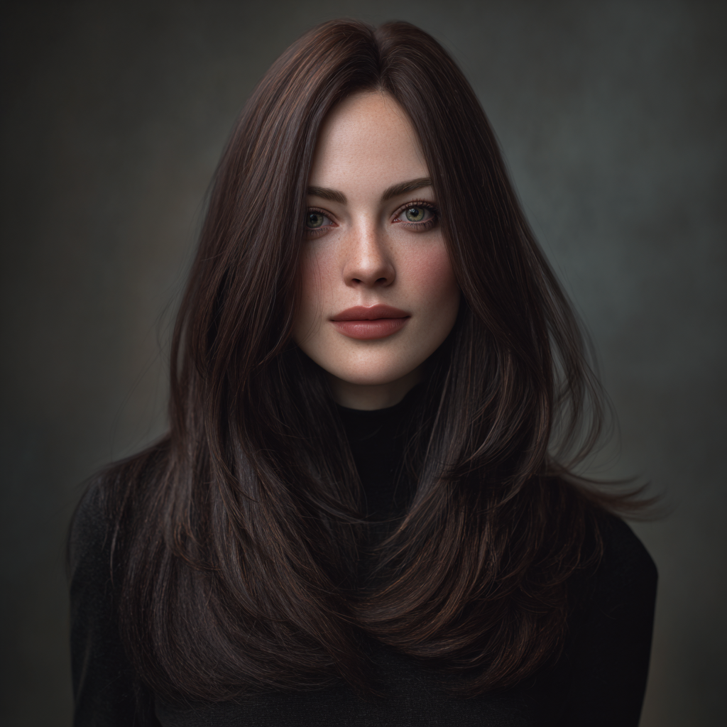 This style enhances natural beauty with delicately cut layers that fall around the face. The soft framing draws attention to the eyes and cheekbones while maintaining the long, flowy length.