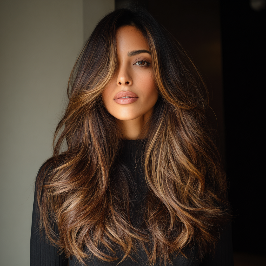 Balayage with long layers adds instant depth, contrast, and a luminous glow to the hair. The layers highlight the hand-painted tones, giving a sun-kissed, multi-dimensional effect.