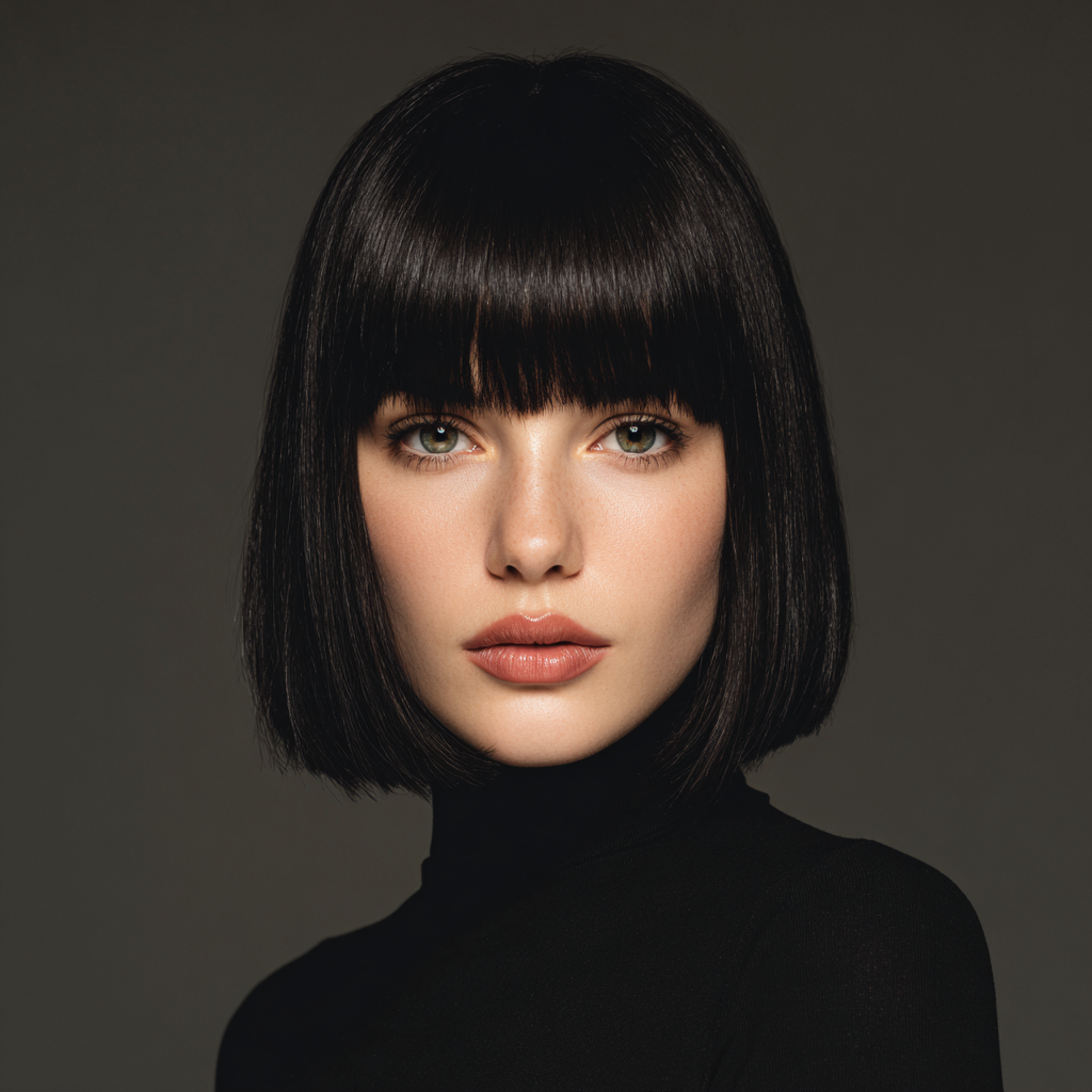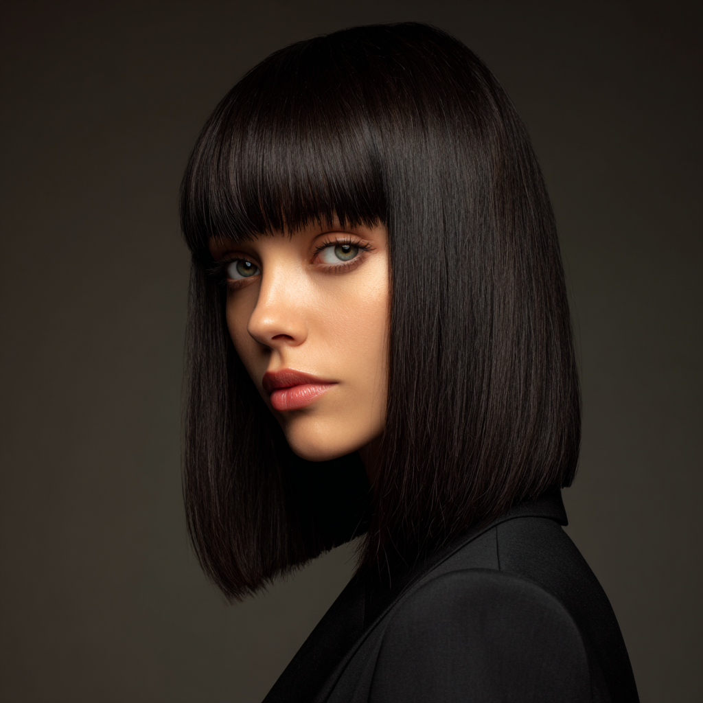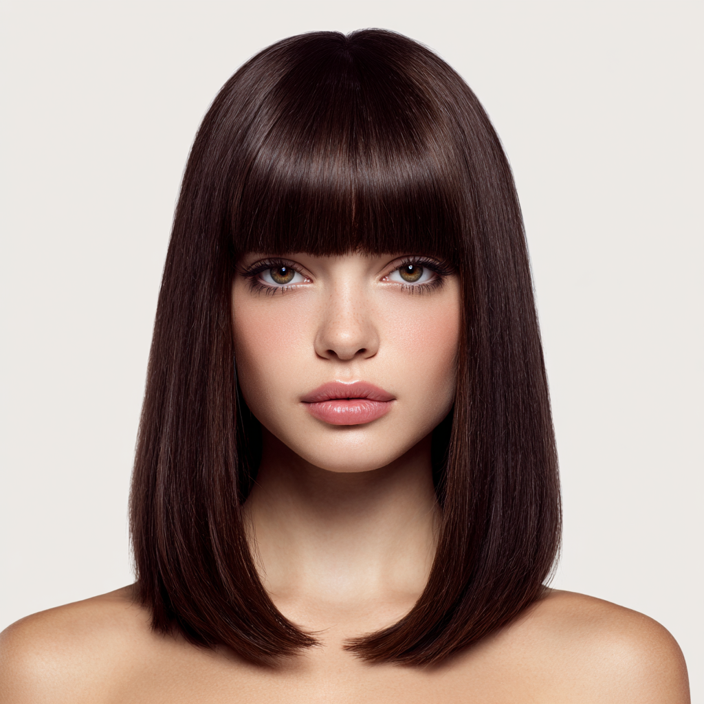 Sleek Medium Bob with Blunt Fringe