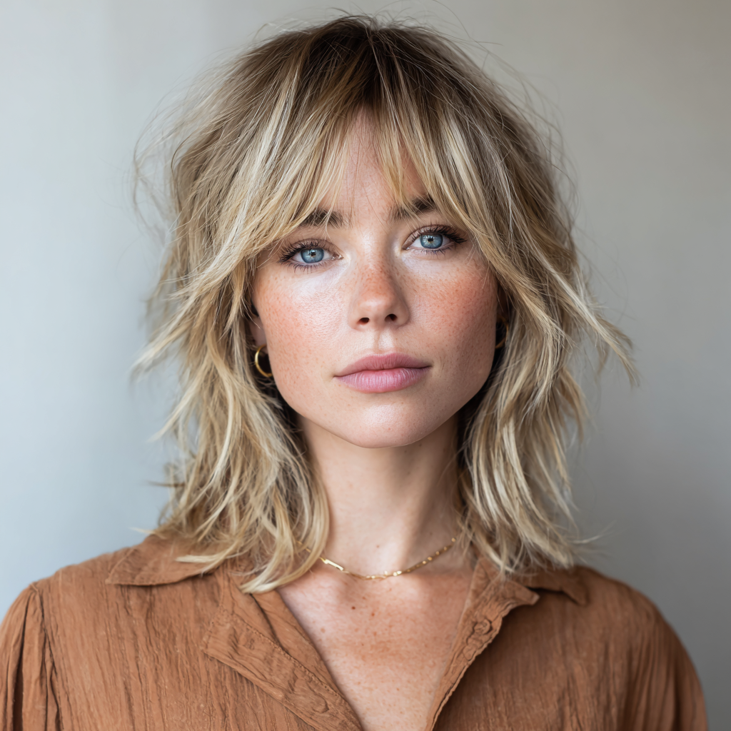 Medium-Length Wolf Cut with Bangs