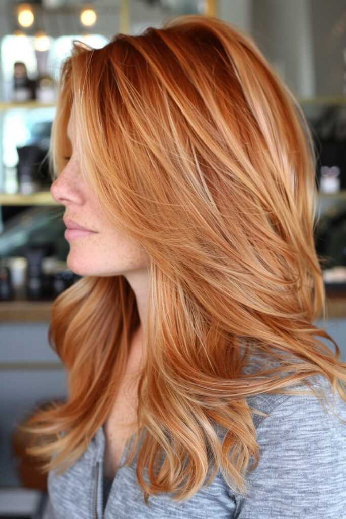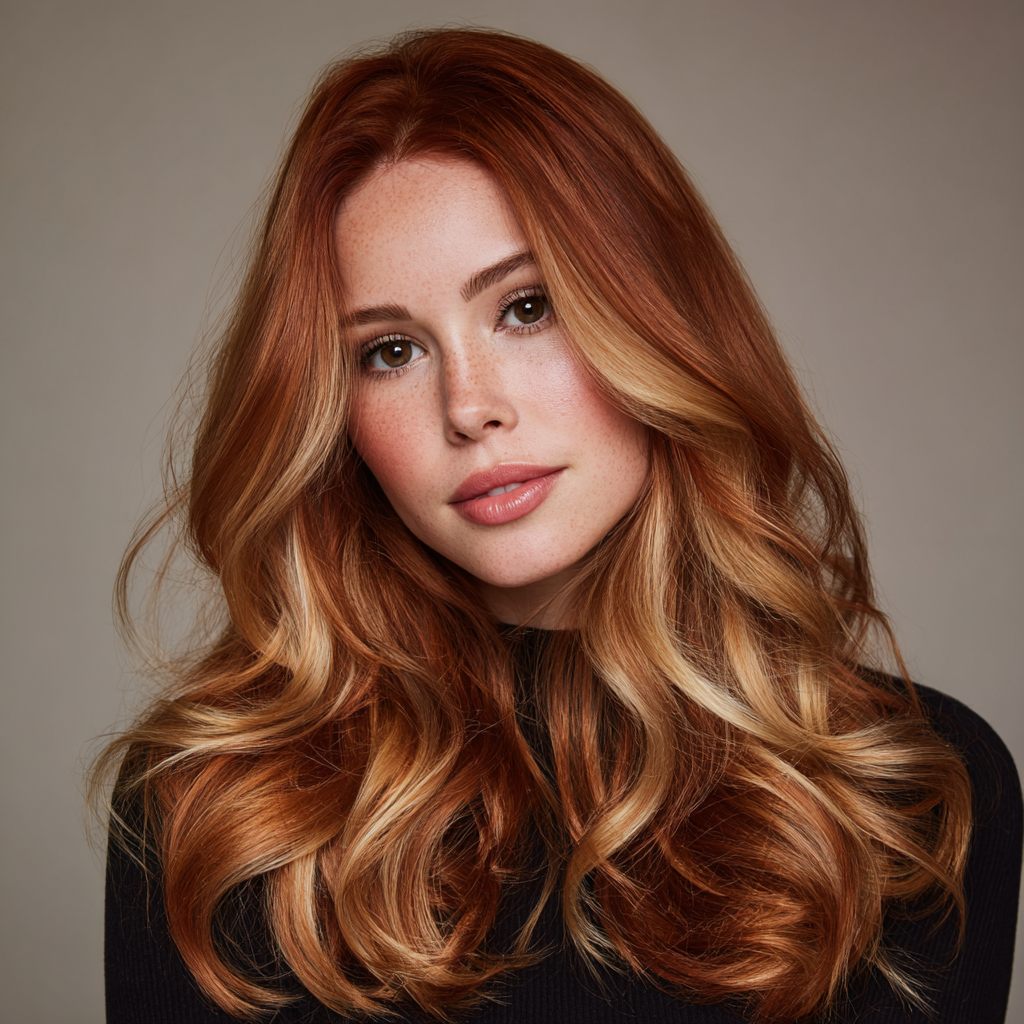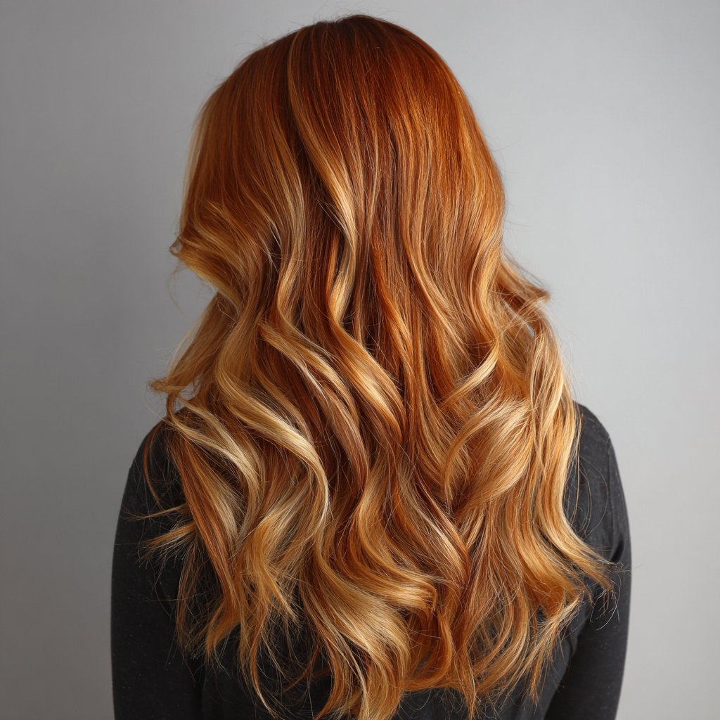 This look celebrates the beauty of authentic red shades enhanced with subtle blonde highlights. The tones mimic naturally sun-lightened hair, creating a realistic, low-maintenance style that grows out gracefully. It’s the go-to look for anyone who wants an understated yet radiant finish.
