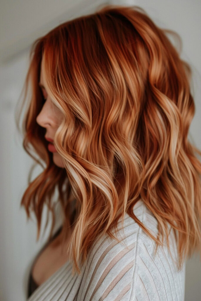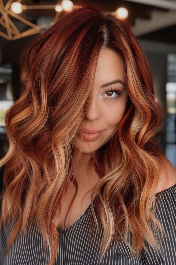 Whether you have copper, auburn, or deep red hair, adding blonde highlights can instantly refresh your style and make your hair look more vibrant and textured.