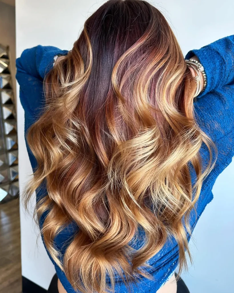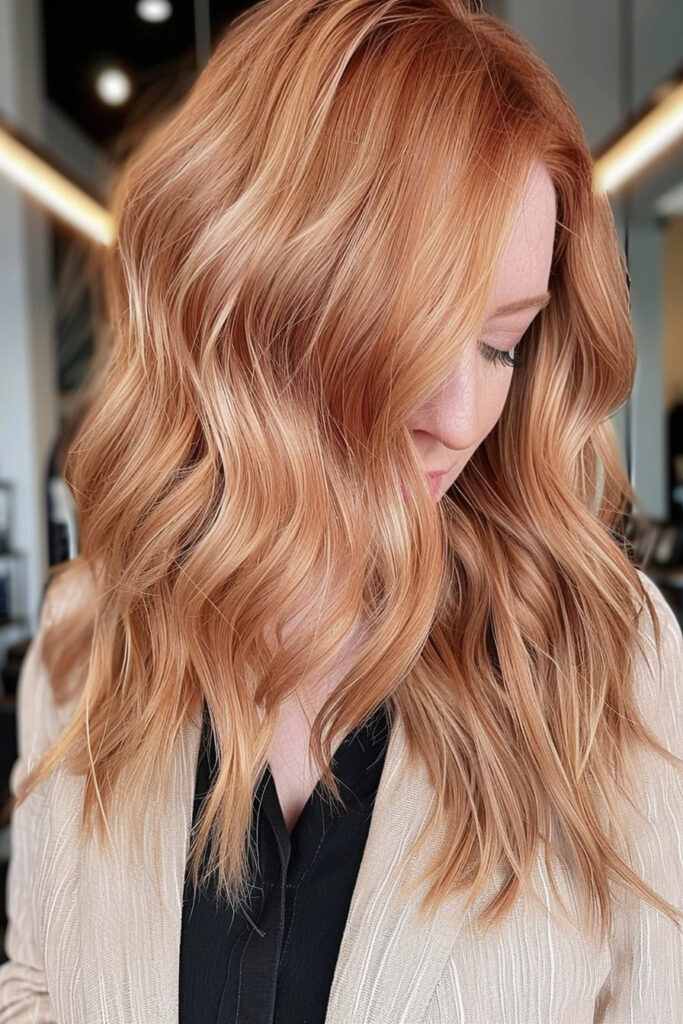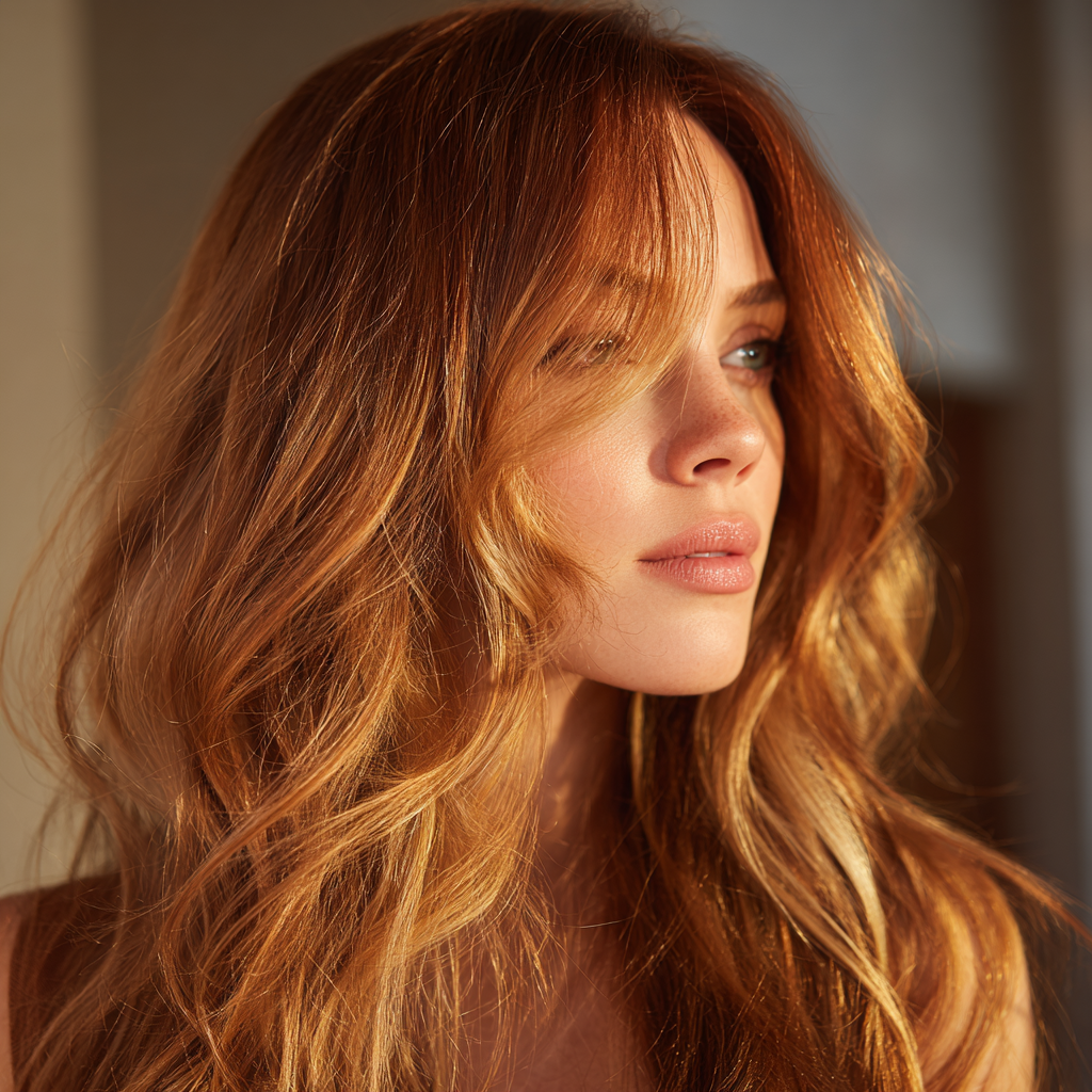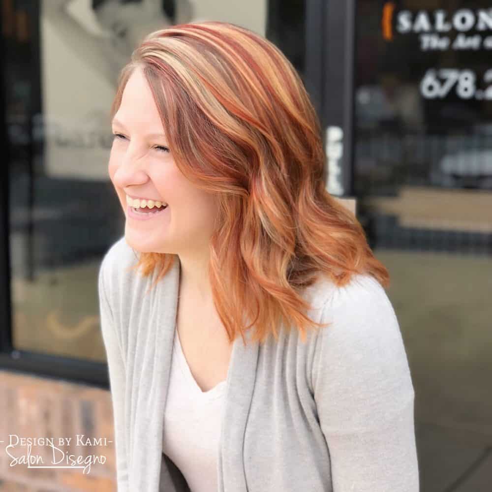 This look brings energy and brightness to red hair with a perfect mix of copper, strawberry, and blonde tones. The multidimensional layering creates a lively, light-reflecting finish that catches the eye from every angle. It’s perfect for those who want their hair to look full of movement and depth.