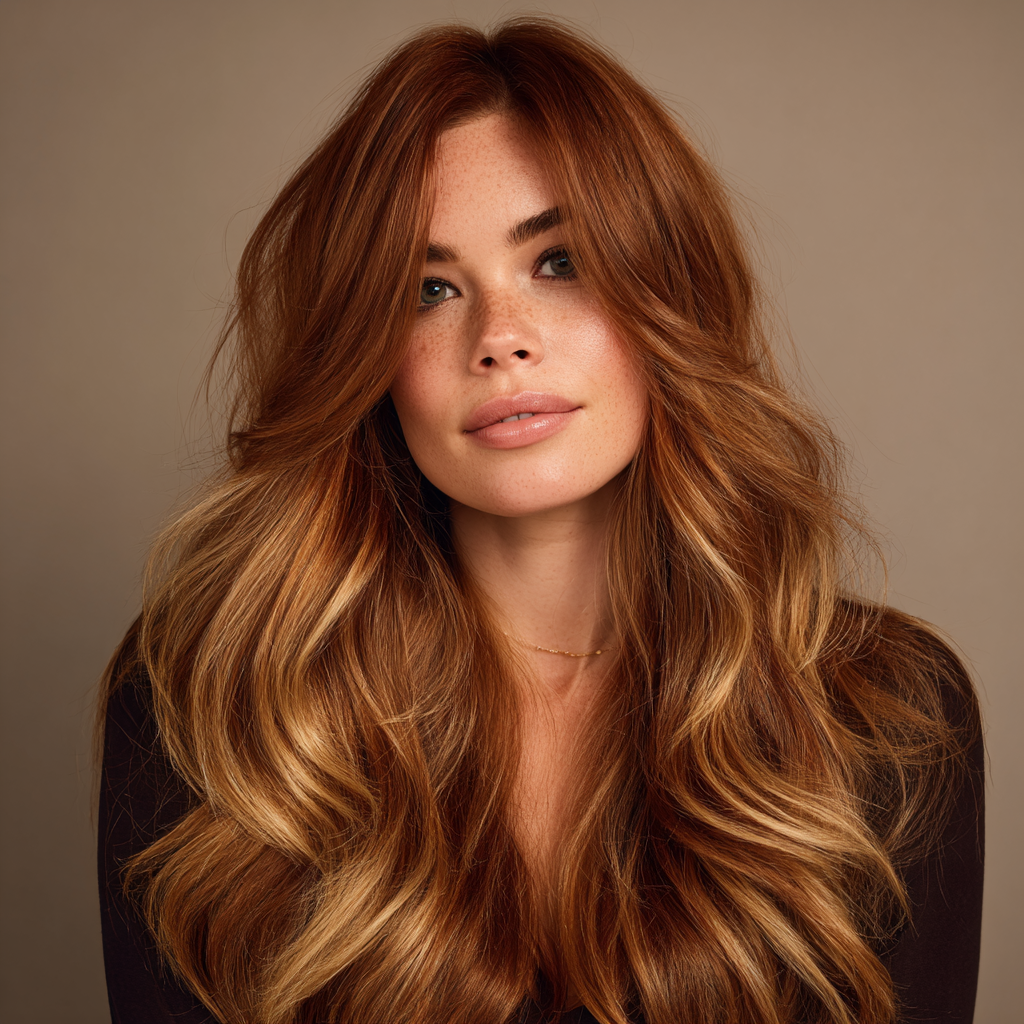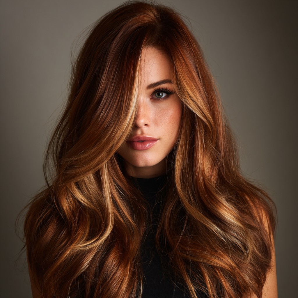 This rich and sophisticated color blends deep auburn with fine copper and honey blonde babylights for a luminous finish. It’s warm, elegant, and full of subtle depth—perfect for those who love refined color with a touch of glow.