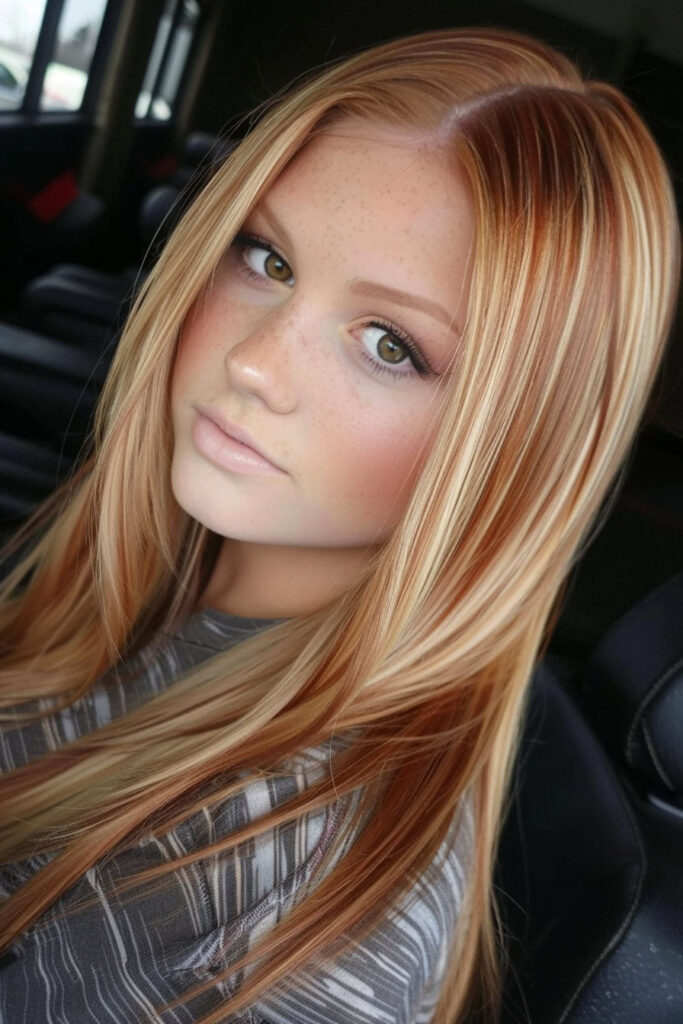 32. Bright Copper Hair with Creamy Blonde Streaks