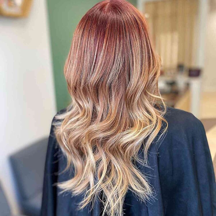 This style is all about effortless beauty—a natural blend of red and blonde tones that look perfectly grown out. It’s low-maintenance, trendy, and ideal for those who love a relaxed, beachy finish.