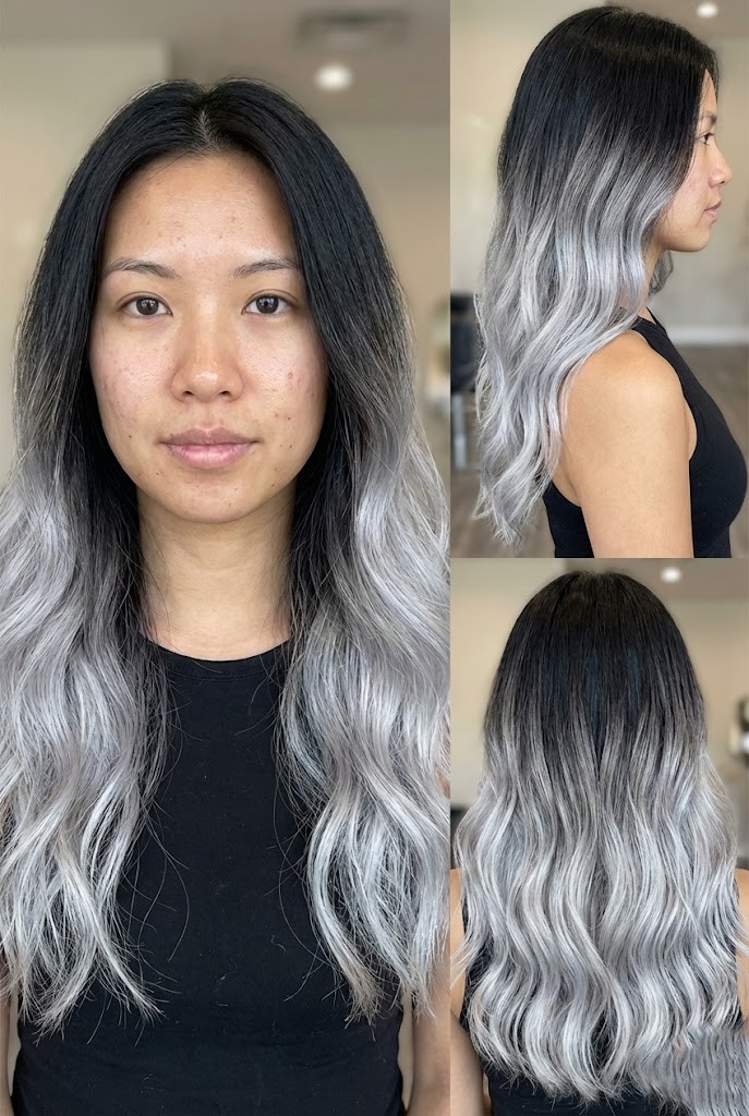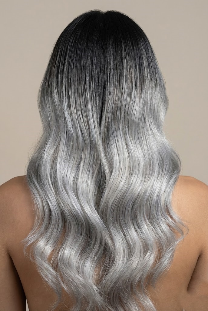 A charcoal silver melt creates a seamless gradient from deep dark roots to smoky metallic ends. The result is a moody, dimensional look that feels modern and luxurious.