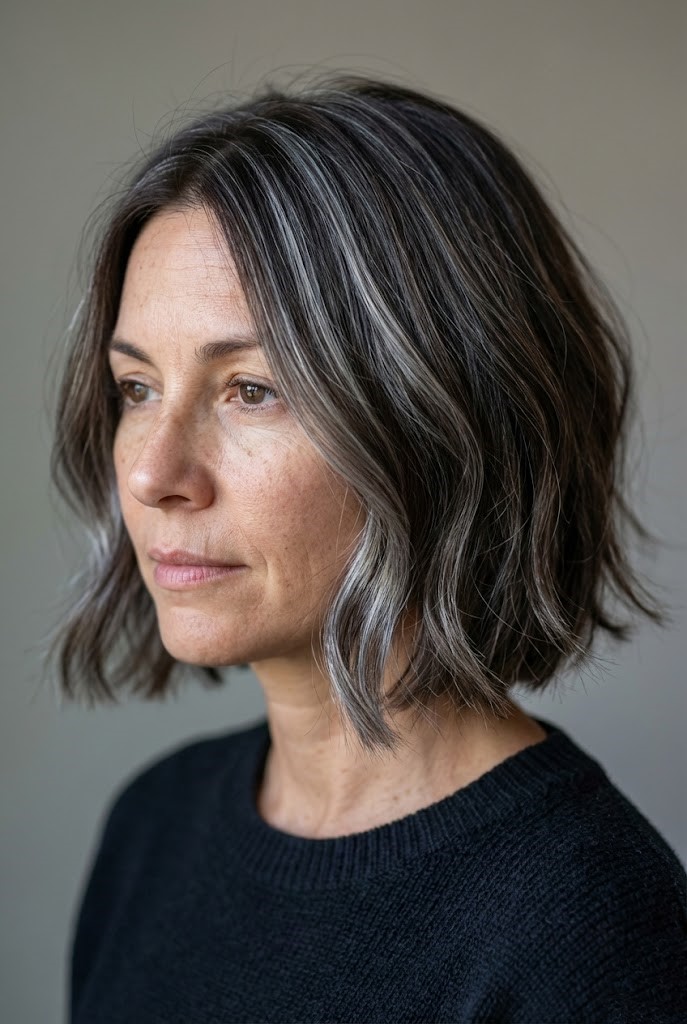 If you’re transitioning into gray hair, this is one of the easiest and most flattering methods. It gives you balanced contrast and a smooth grow-out.