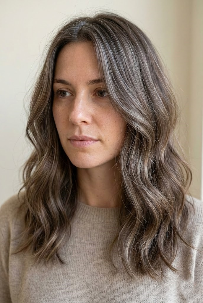 34. Gray-Smoked Highlights for Wavy Hair