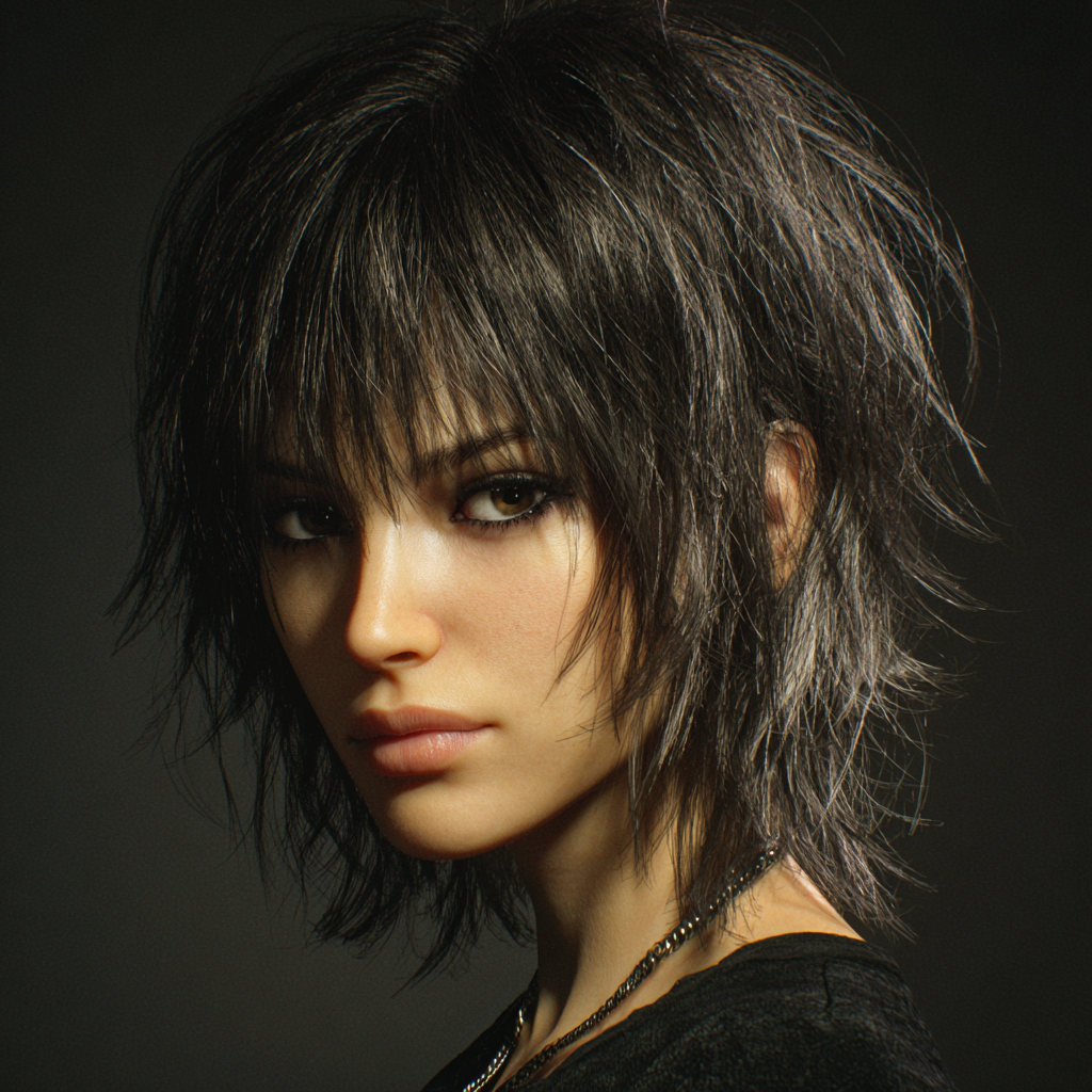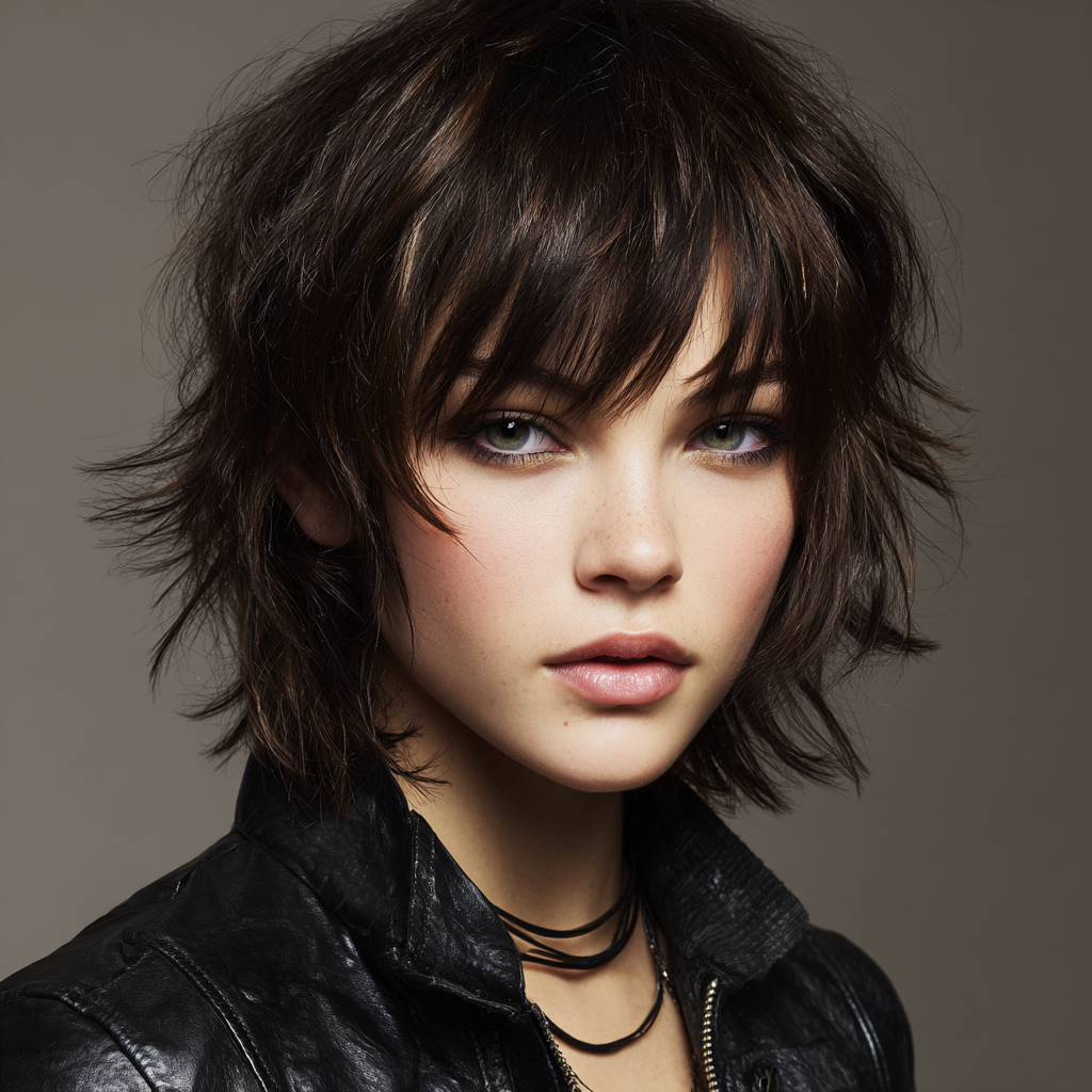 The choppy wolf cut leans into its rebellious side with bold, uneven layers and defined texture. Each section stands out for that messy, rockstar-inspired vibe that’s both daring and stylish.