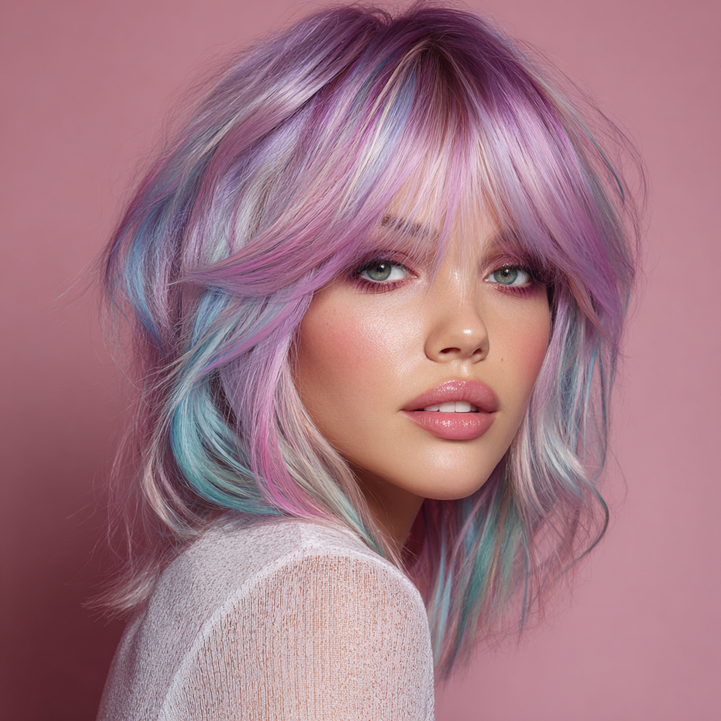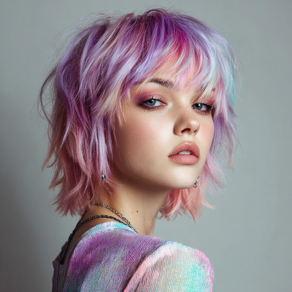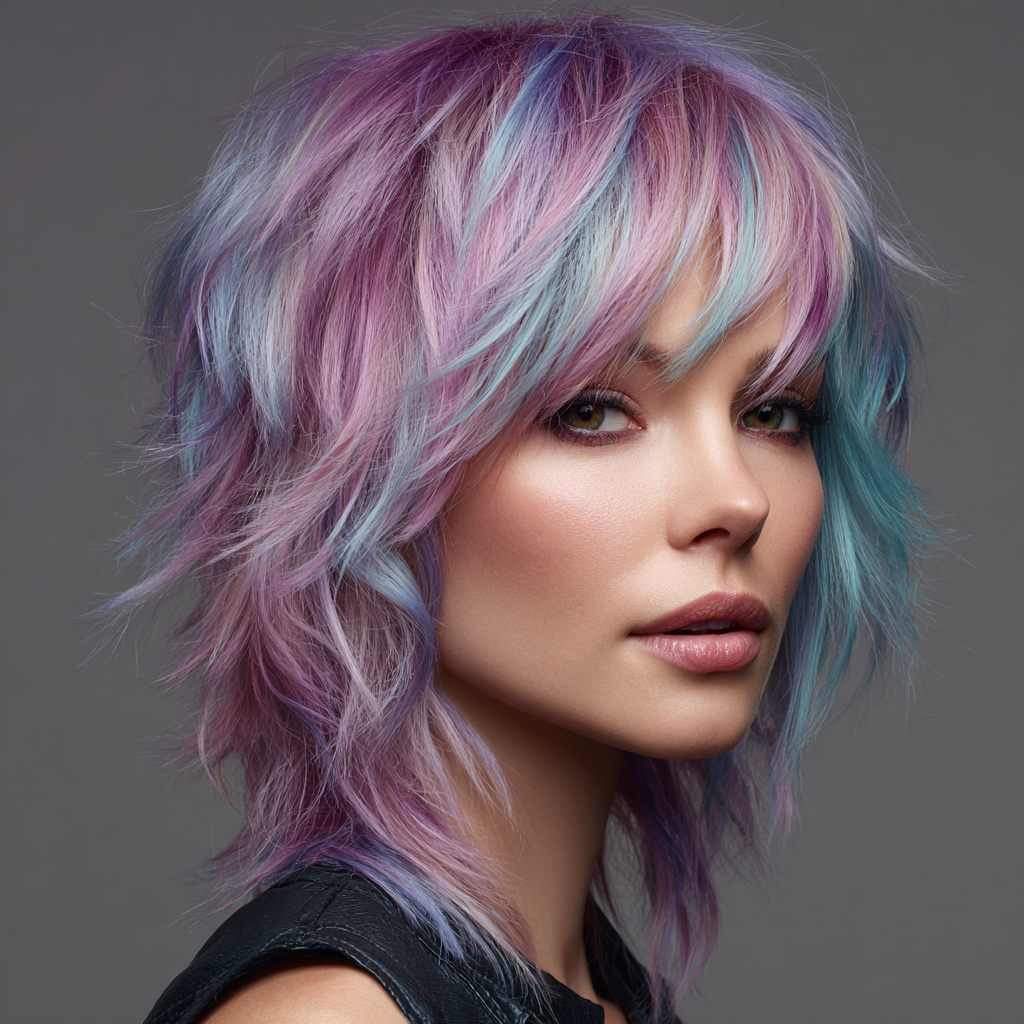 Colored Wolf Cut (Pastel or Vivid Tones)