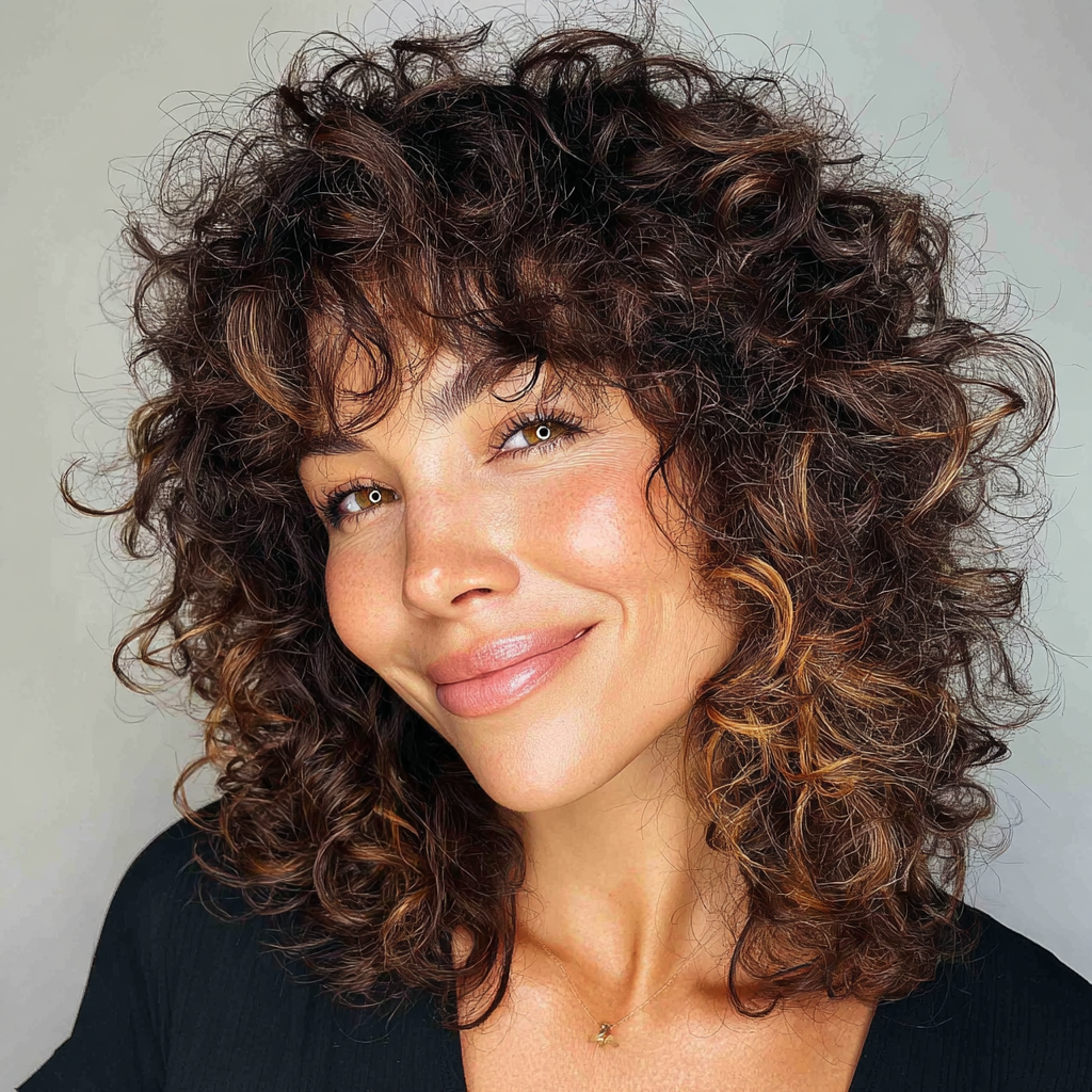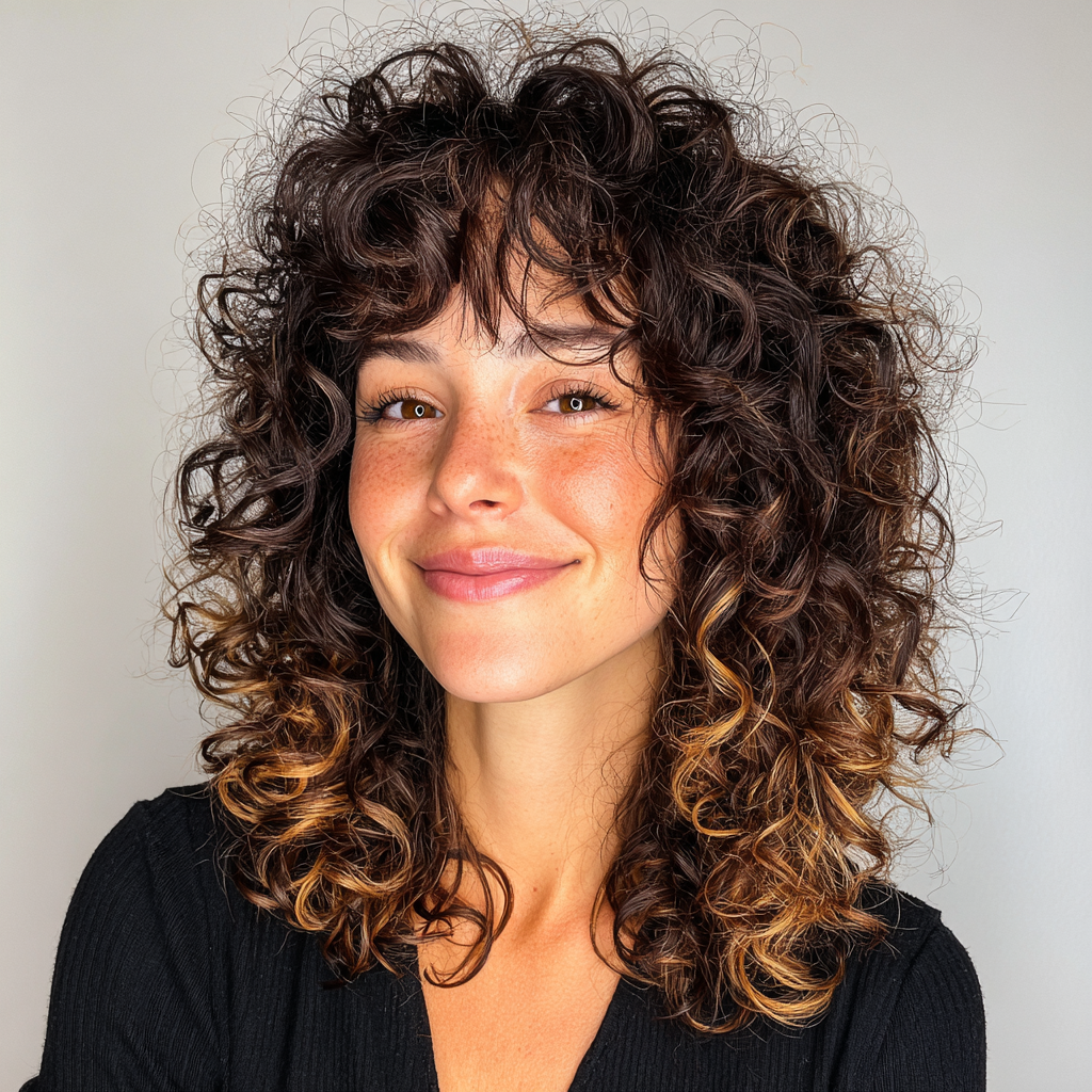 The curly wolf cut combines shape and bounce beautifully, enhancing natural curls while giving them structure through layered shaping. It keeps the crown voluminous while tapering the ends for balance.