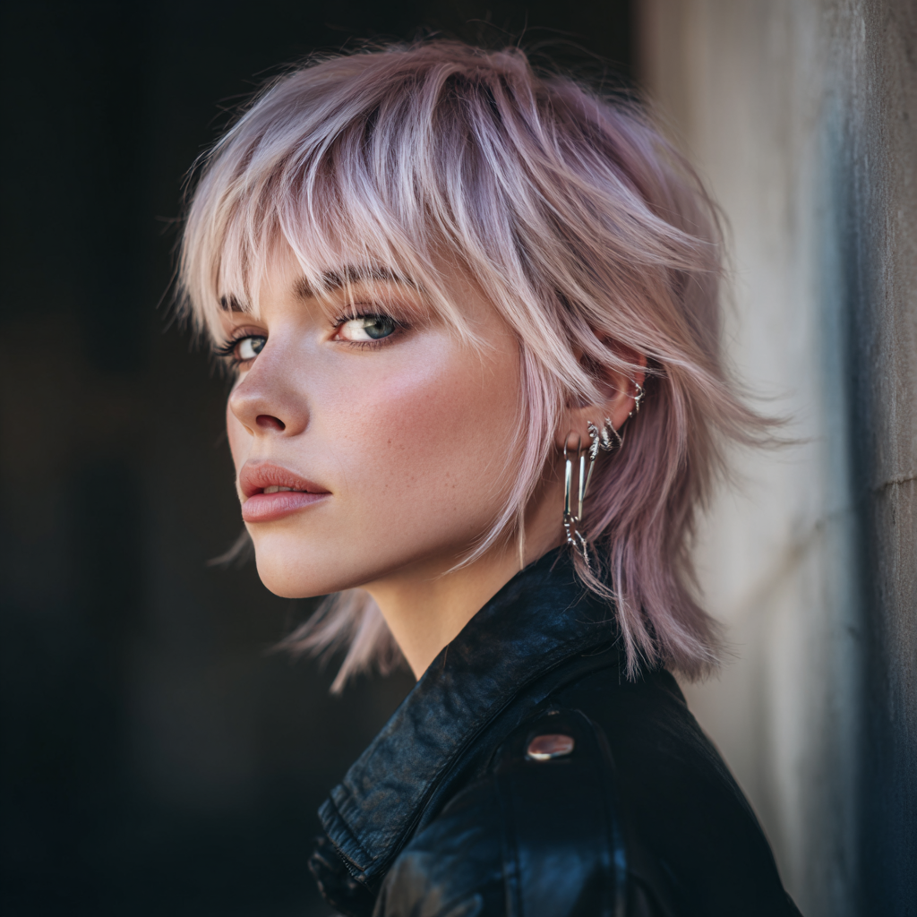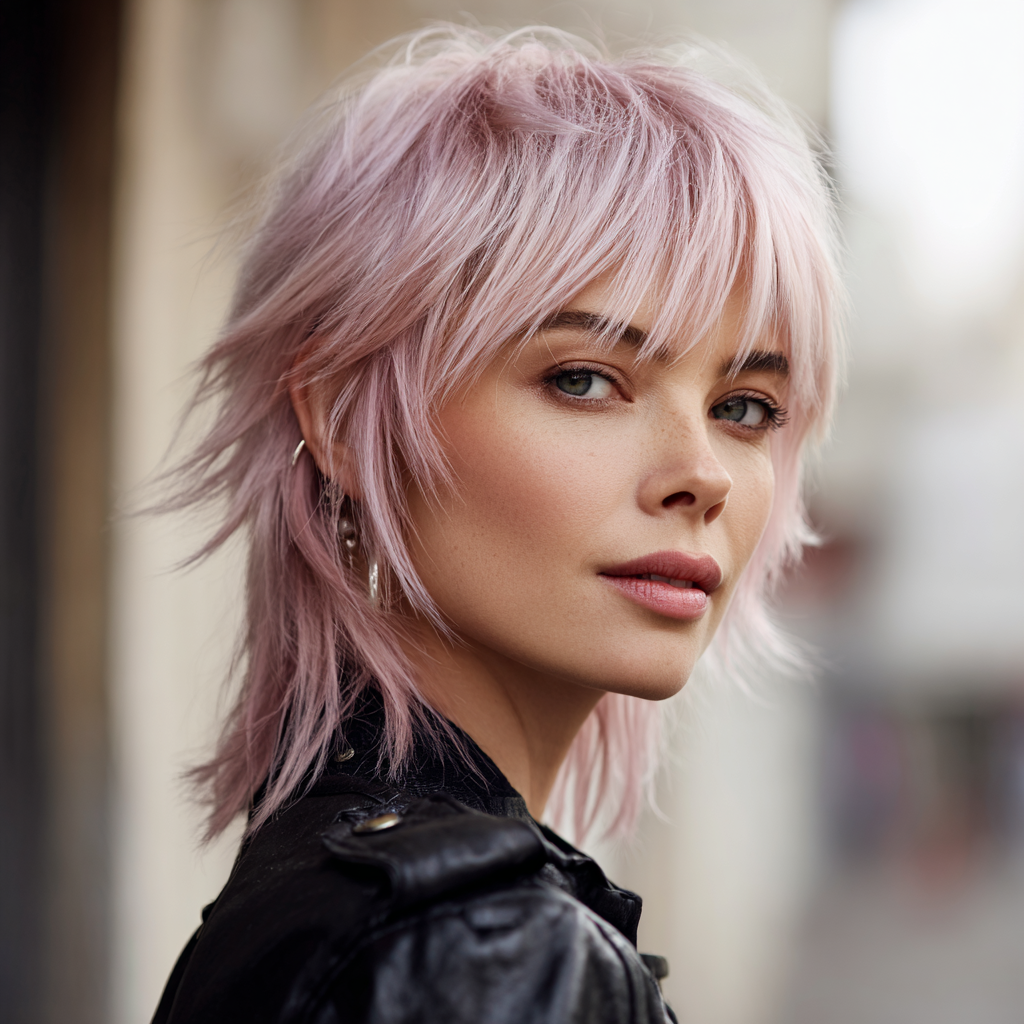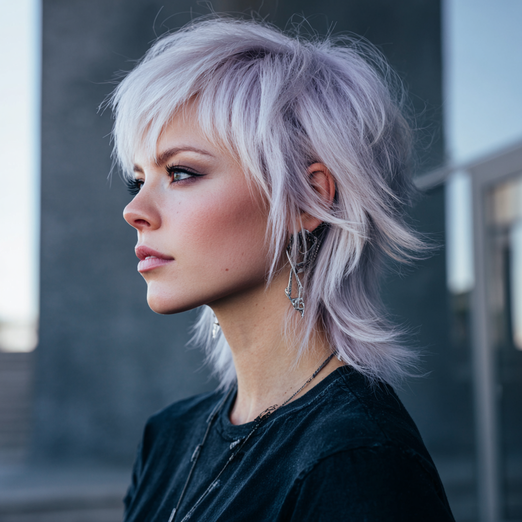 The mullet wolf cut is bold, edgy, and full of personality. It combines shorter layers around the crown with longer, tapered ends for a dramatic, fashion-forward look.