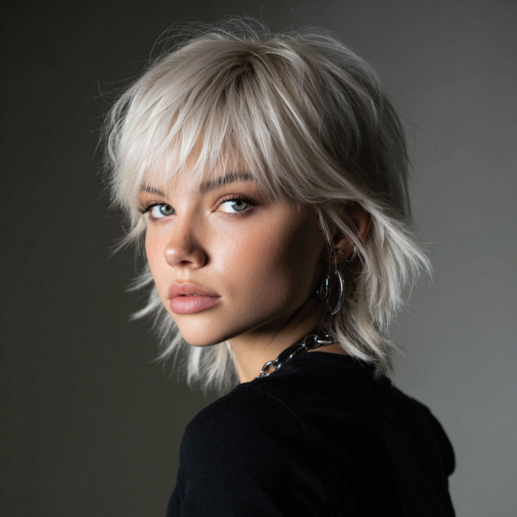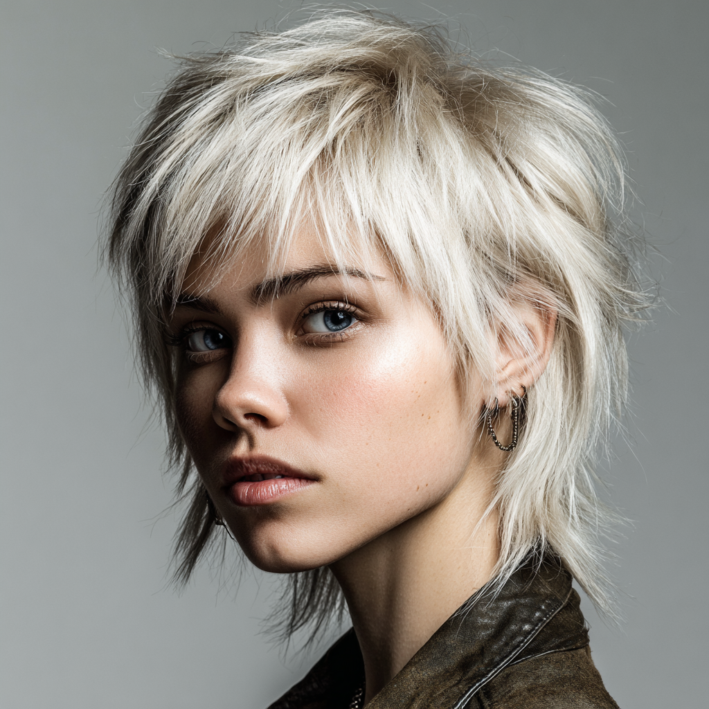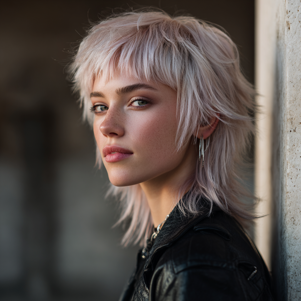 The mullet wolf cut is bold, edgy, and full of personality. It combines shorter layers around the crown with longer, tapered ends for a dramatic, fashion-forward look.