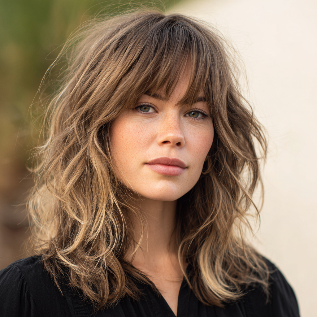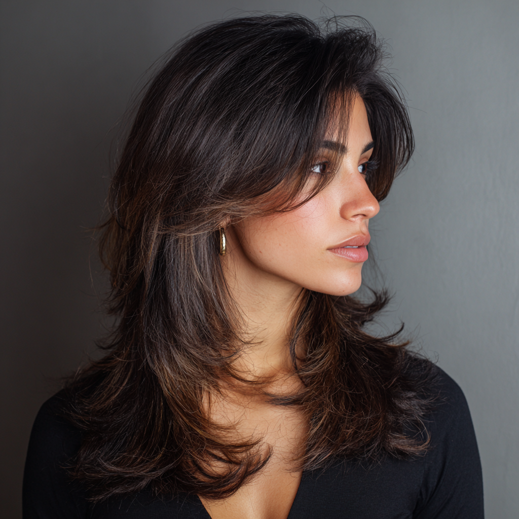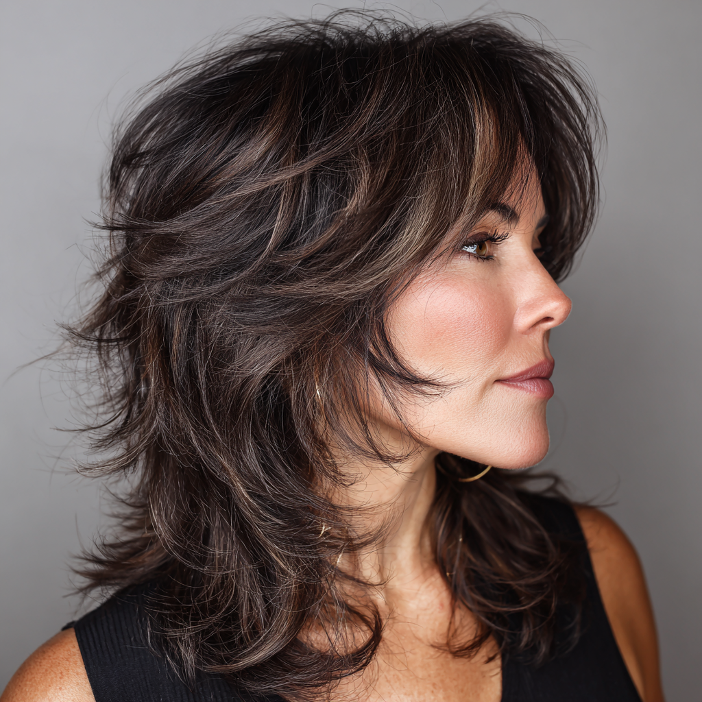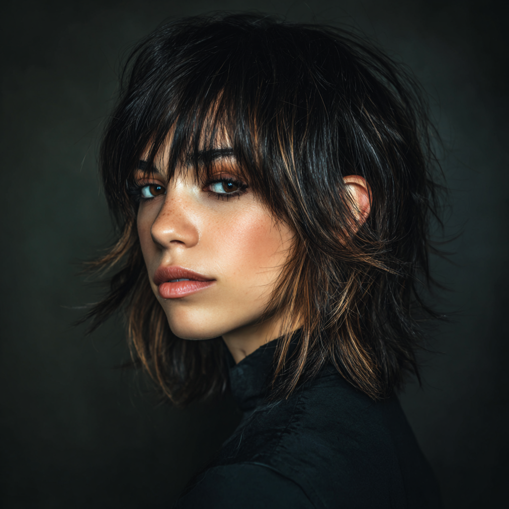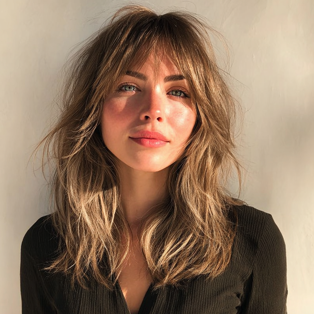 The classic wolf cut perfectly blends retro and modern energy — soft layers at the crown flow into wispy ends that create effortless texture. It’s edgy, feminine, and suits almost any hair type or length.