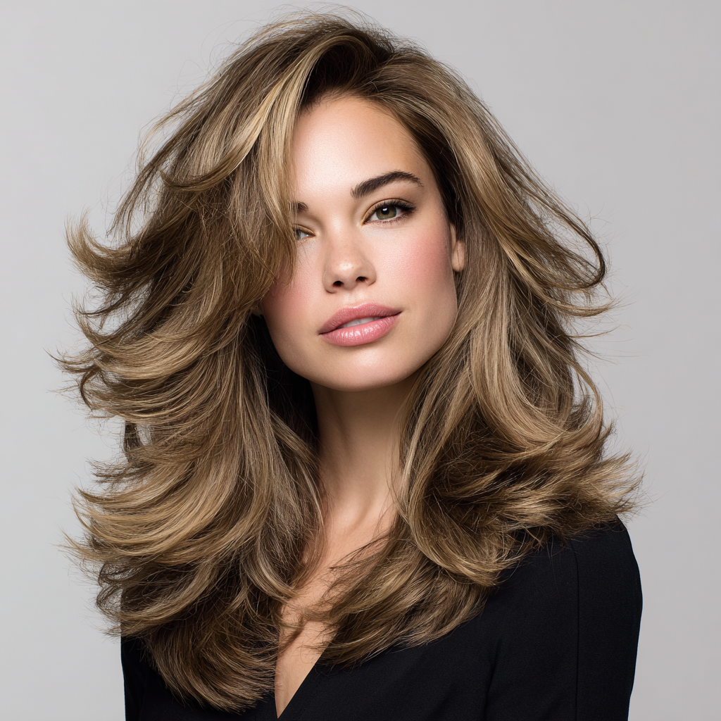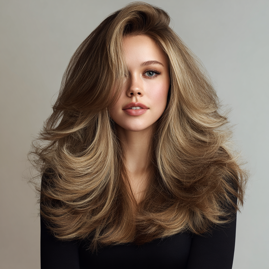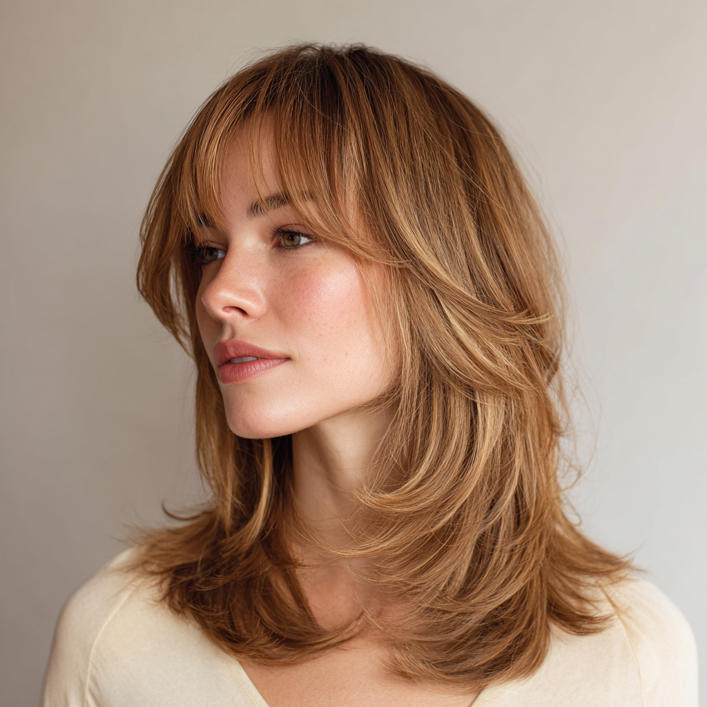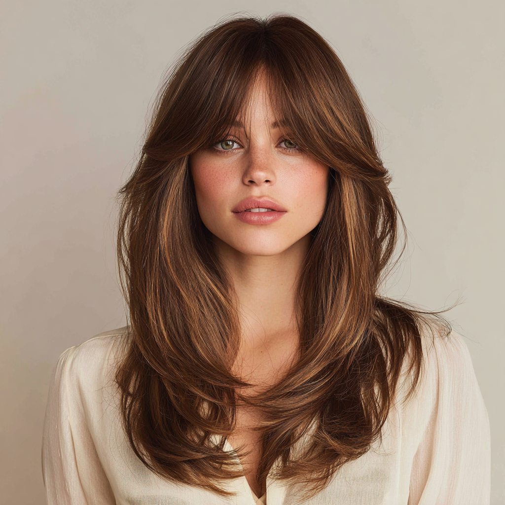 This cut gives instant volume and a natural “just-styled” look without effort. It’s a timeless choice if you want movement, lift, and a chic, lived-in finish.