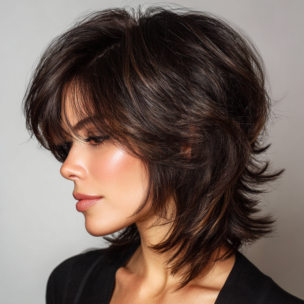 The shaggy wolf cut embraces chaos in the most stylish way. It’s all about messy, undone layers that give a bold, carefree vibe while keeping the hair light and bouncy.
